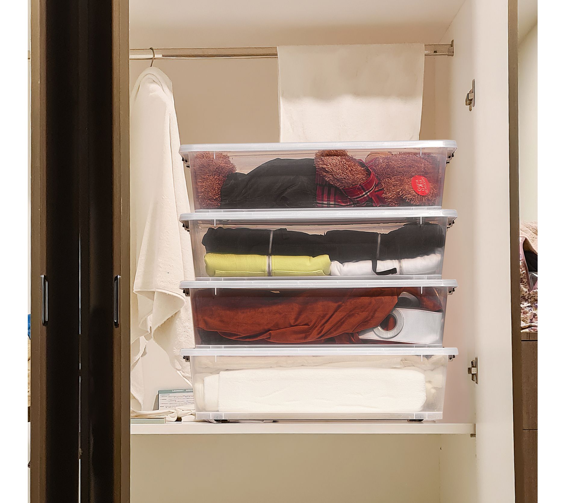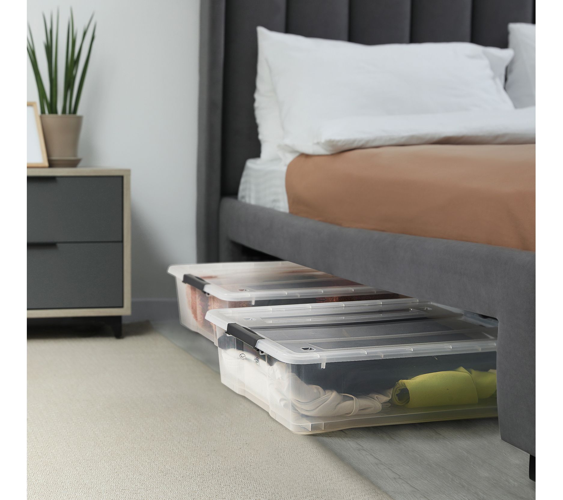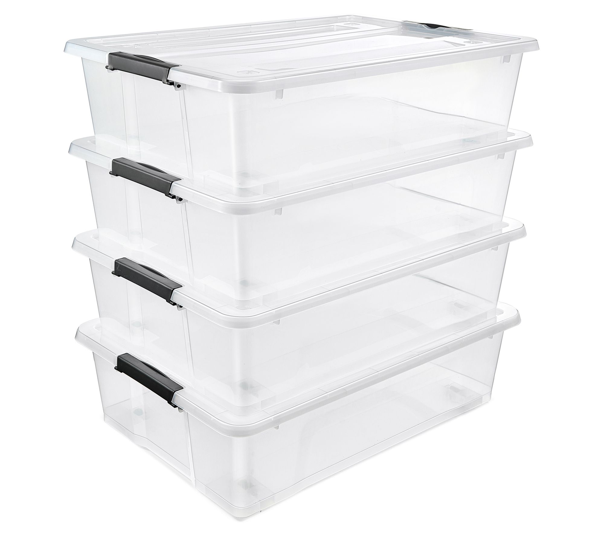 • Includes four 40-qt clear underbed storage containers with wheels and lids