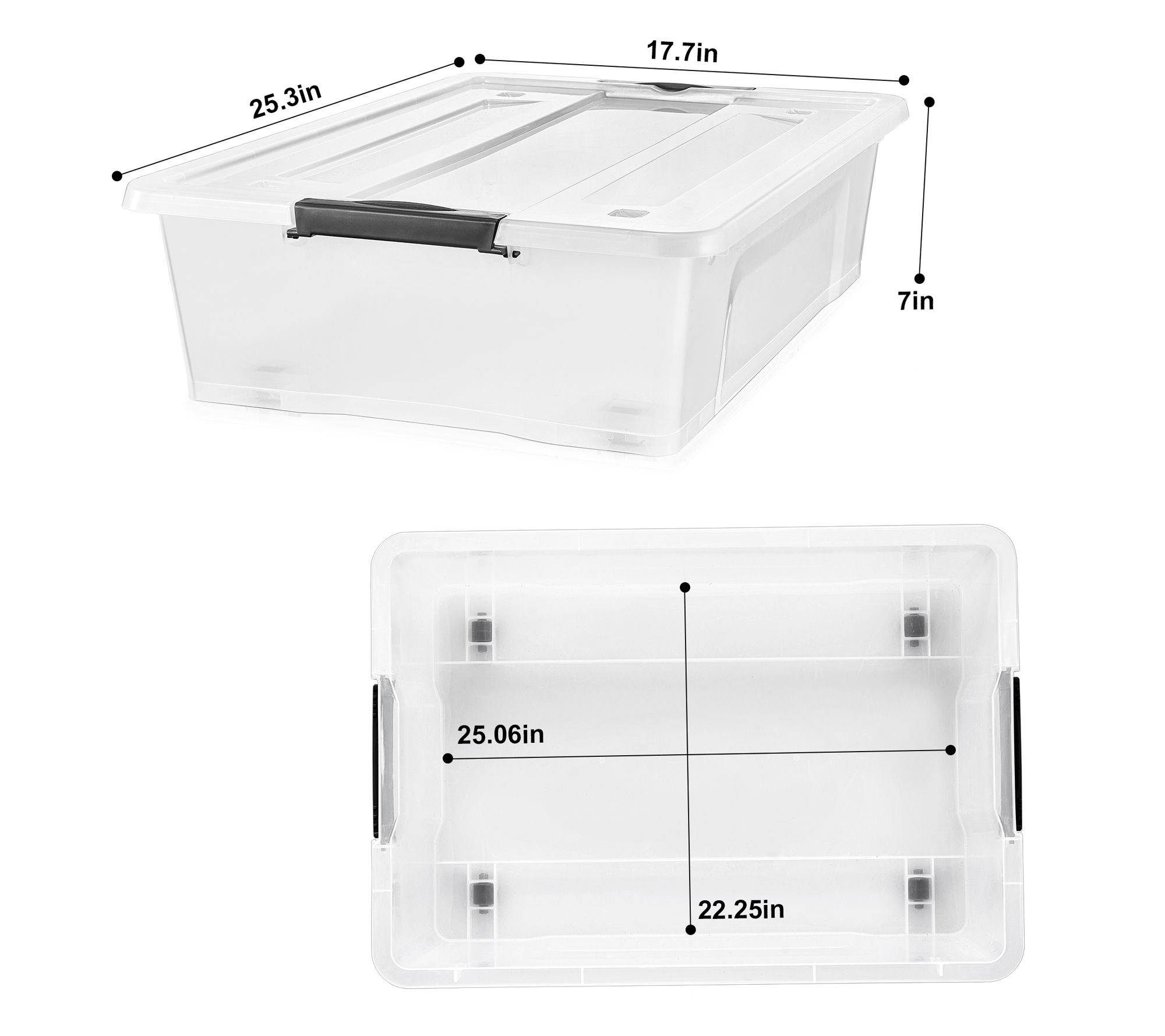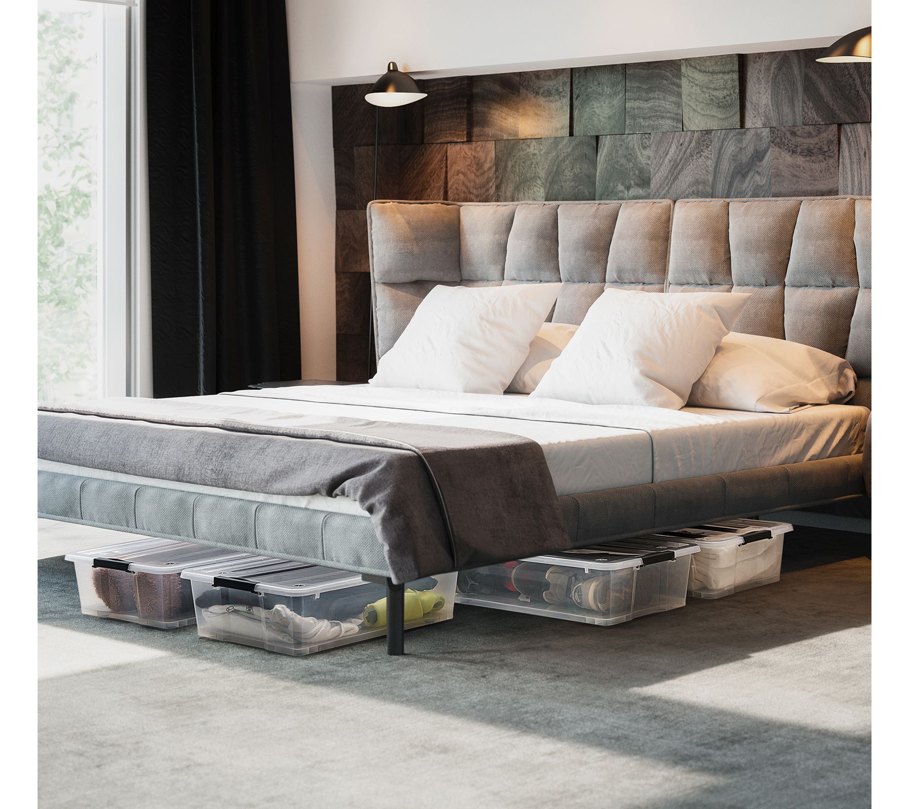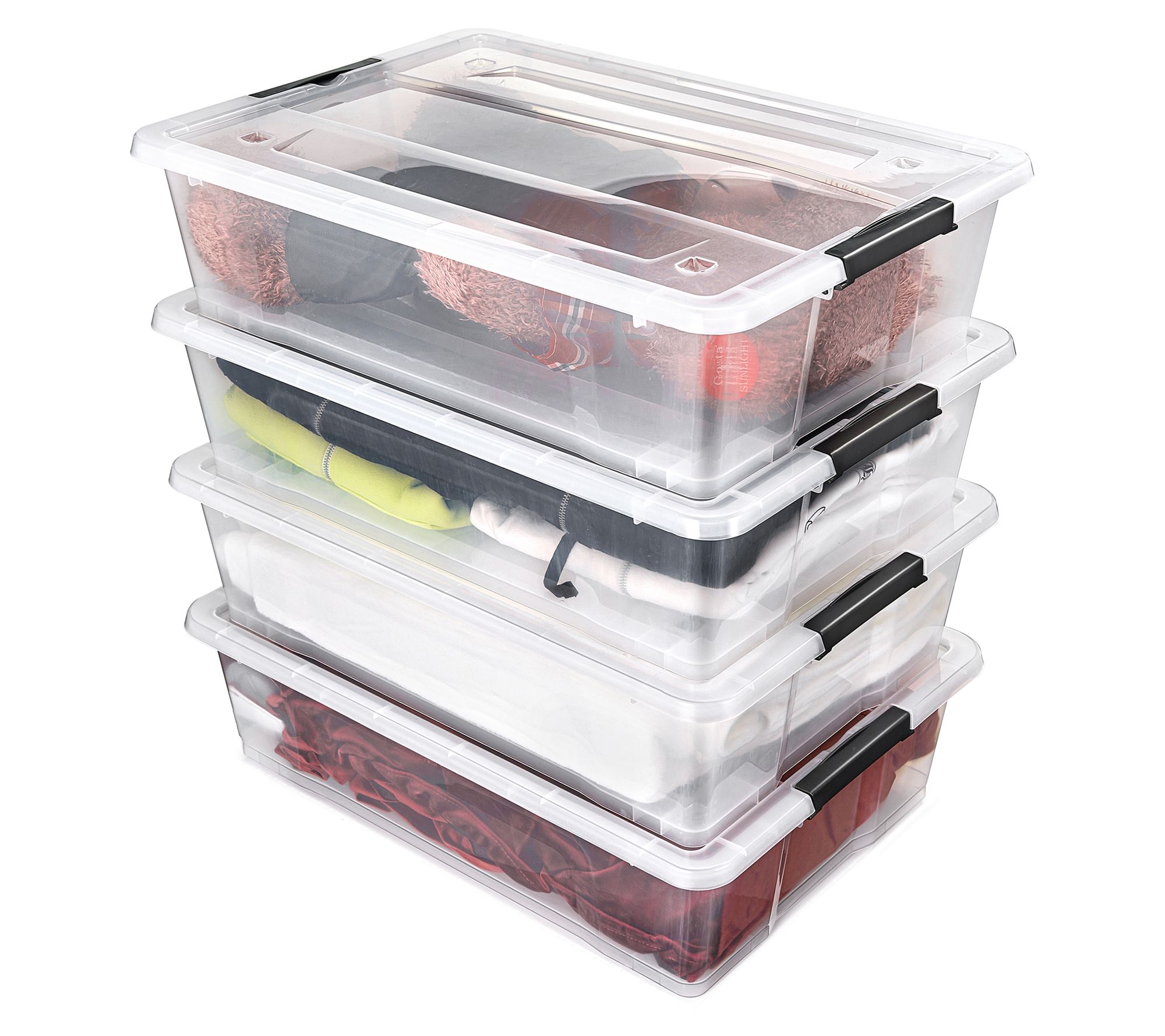 • Includes four 40-qt clear underbed storage containers with wheels and lids