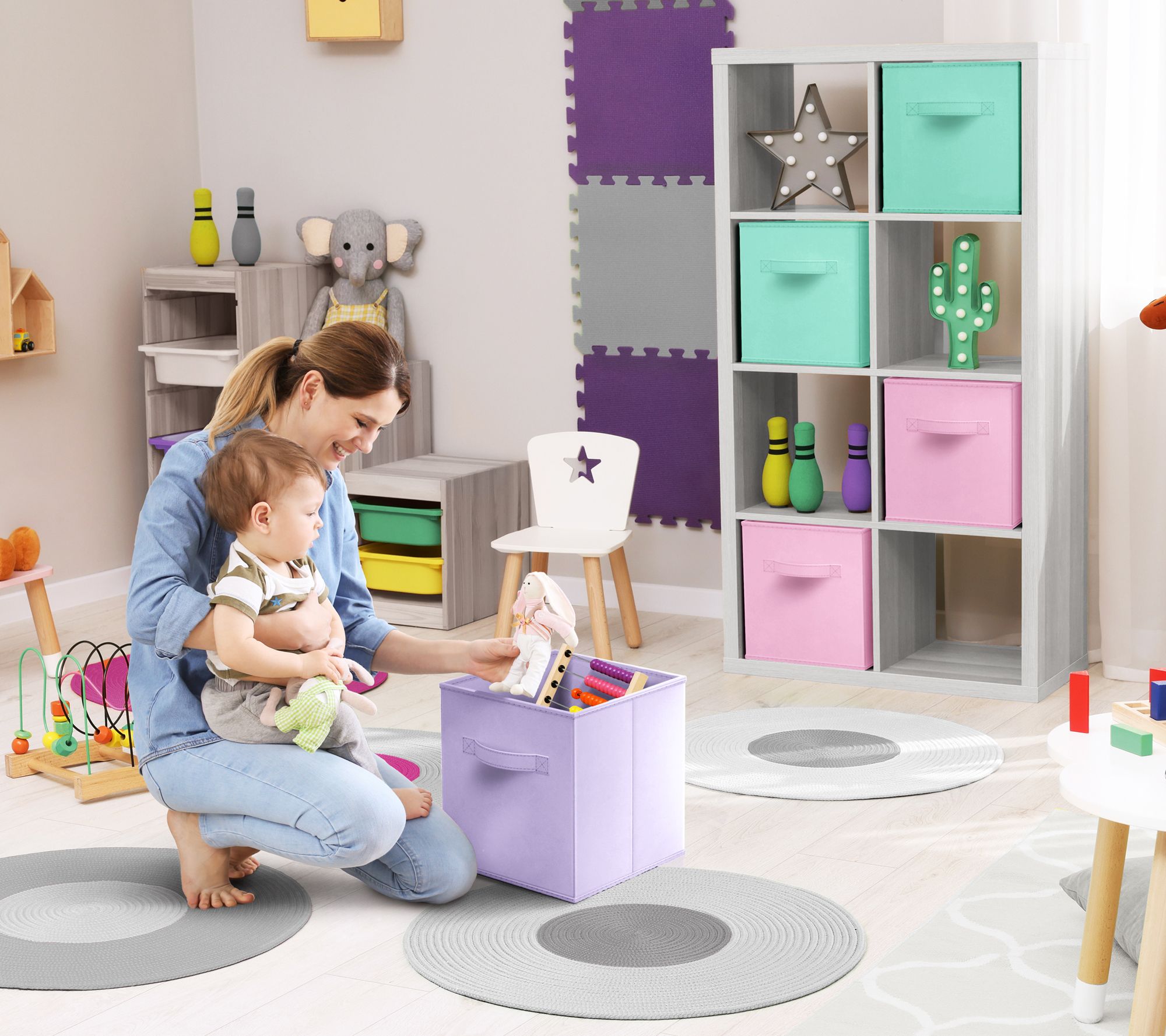 • Includes six foldable fabric storage cubes