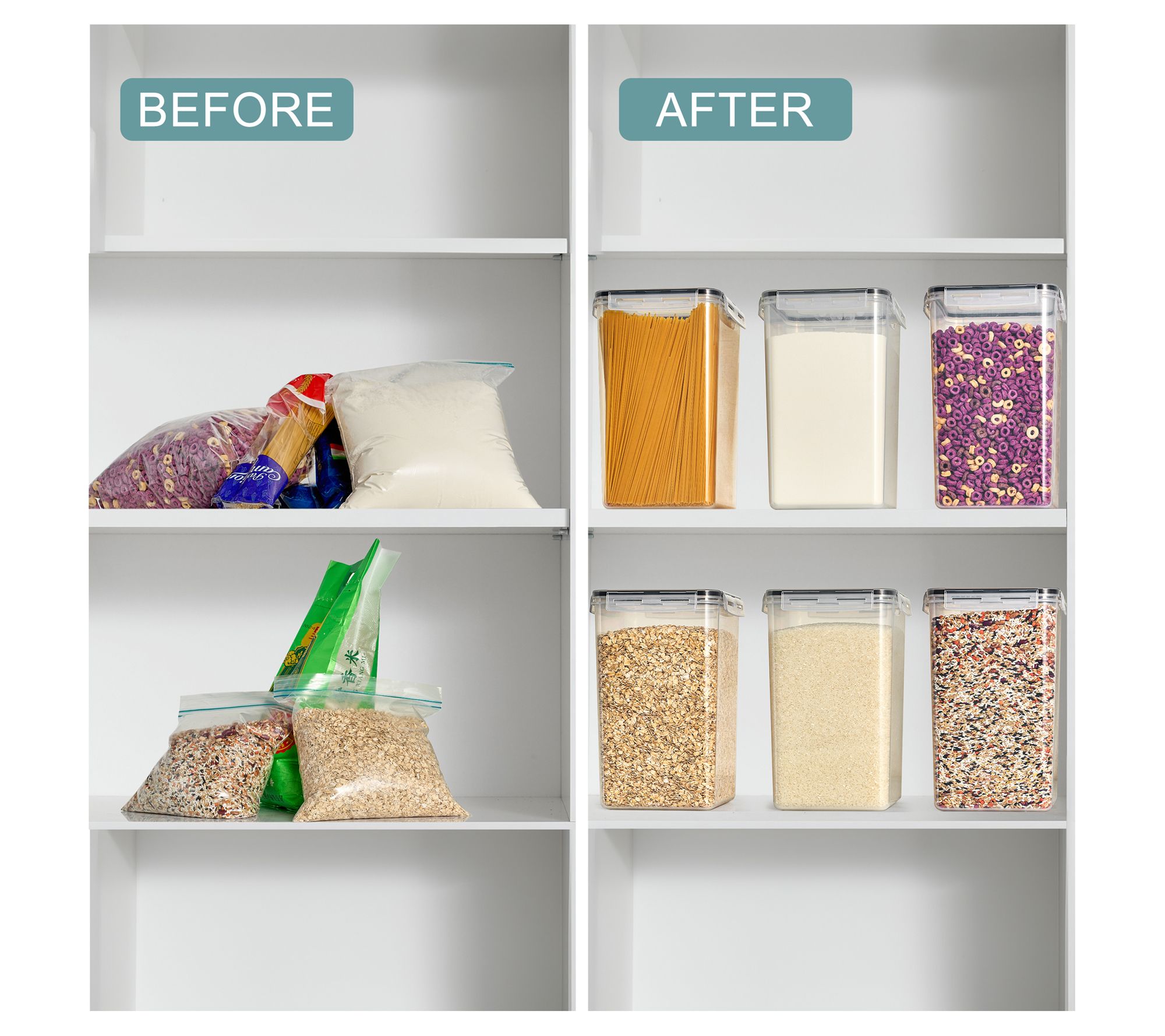 • Includes six food storage dispensers with six lids, one measuring spoon, two sheets labels, and one chalkboard marker