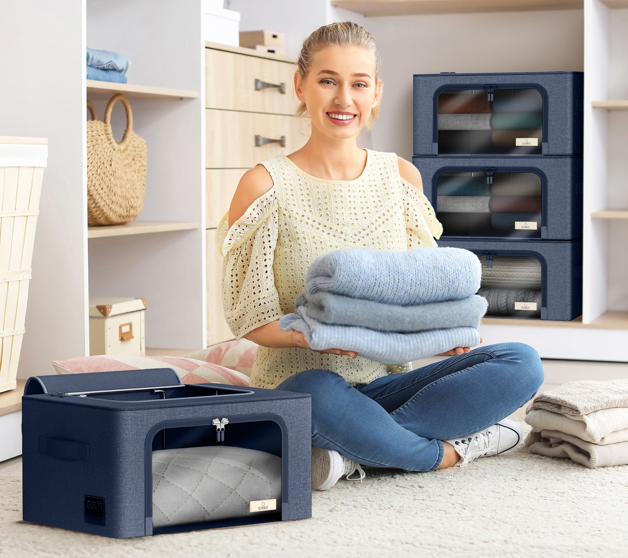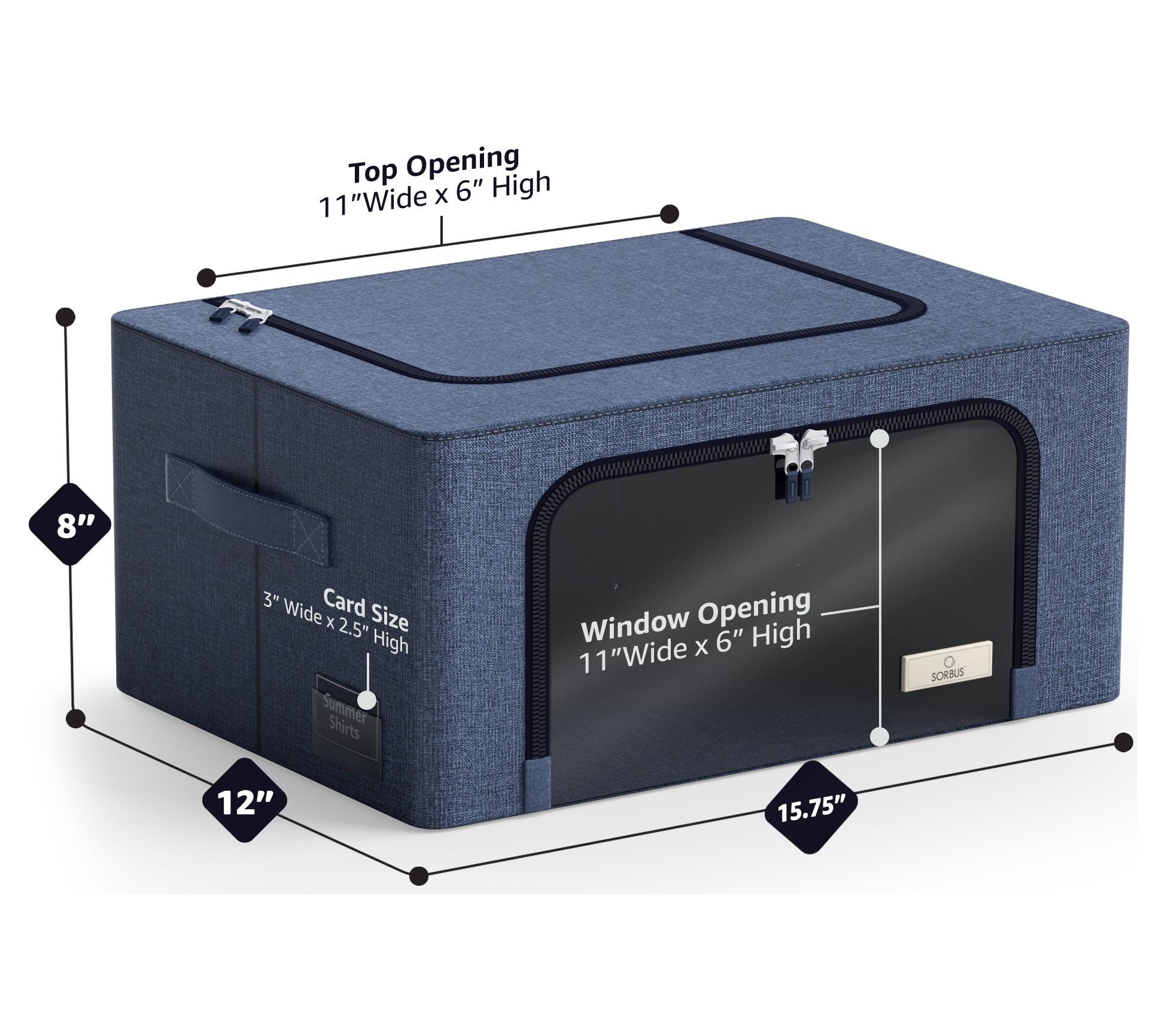 Need a versatile way to organize your household items? This set of six storage bins makes decluttering a breeze. With a clear front window, you can easily see what's inside each bin without rummaging through. The front and top zipper openings make accessing your sweaters, linens, toys, or decorations convenient, while the durable metal frame allows for stacking. Transporting is effortless thanks to the sturdy side handles. For those times when you need to save space, simply collapse the bins flat and tuck them away. From Sorbus.