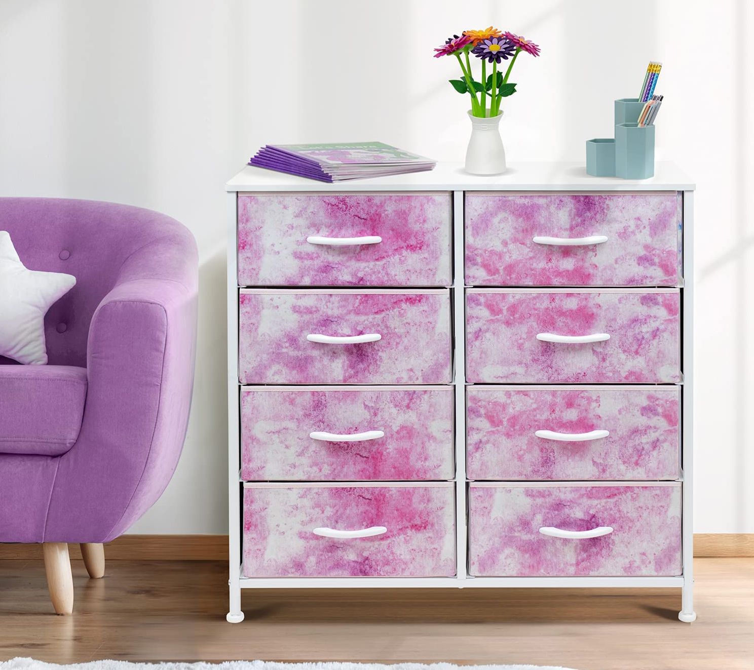Declutter in style with this eight-drawer fabric storage cube dresser with a wood top for displaying your favorite items. From Sorbus.