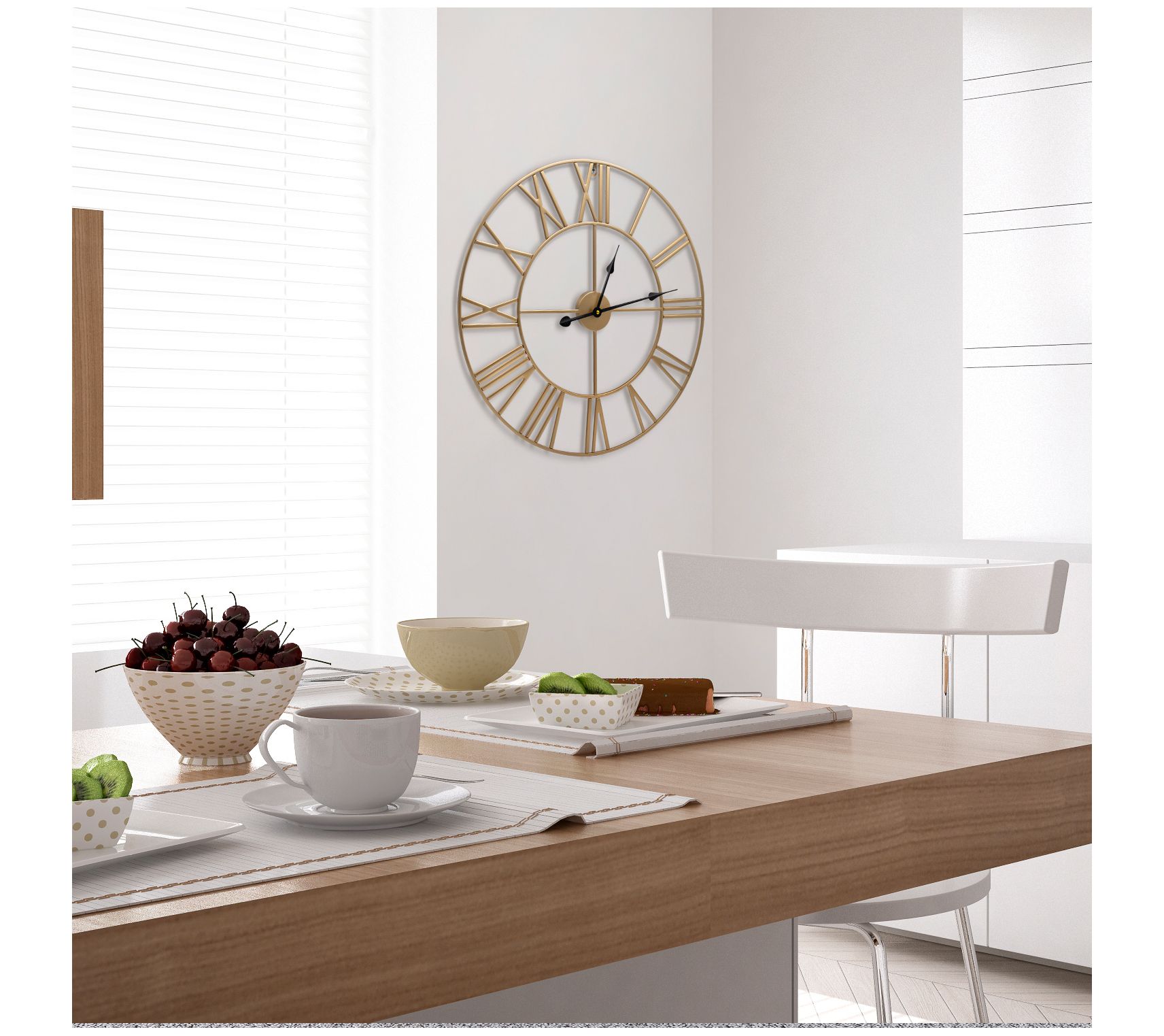 Elegantly appointed with classic Roman numerals, this analog wall clock does double duty keeping you on schedule with its bold display and updating your decor with its sleek metal design. From Sorbus.