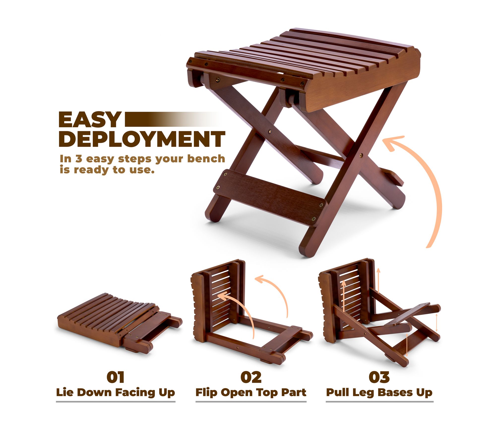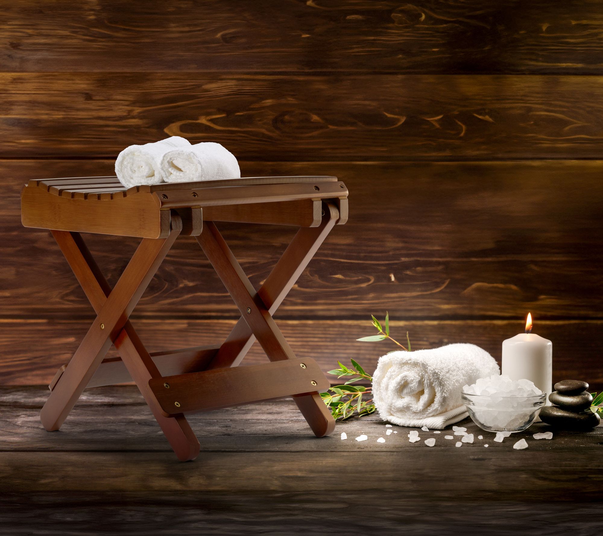 Sorbus Bamboo Folding Step Stool Bench, Shower and Bath Chair