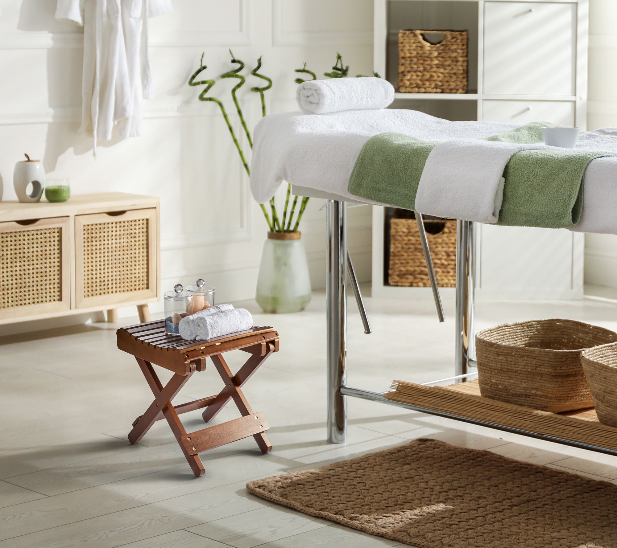Small but mighty, this bamboo bath chair lends a hand with everything from shaving in the shower to tying your shoes in the entryway. Its folding design makes storage simple, while the slatted seat keeps things dry and comfortable when used as a seat or spa-inspired display. From Sorbus.