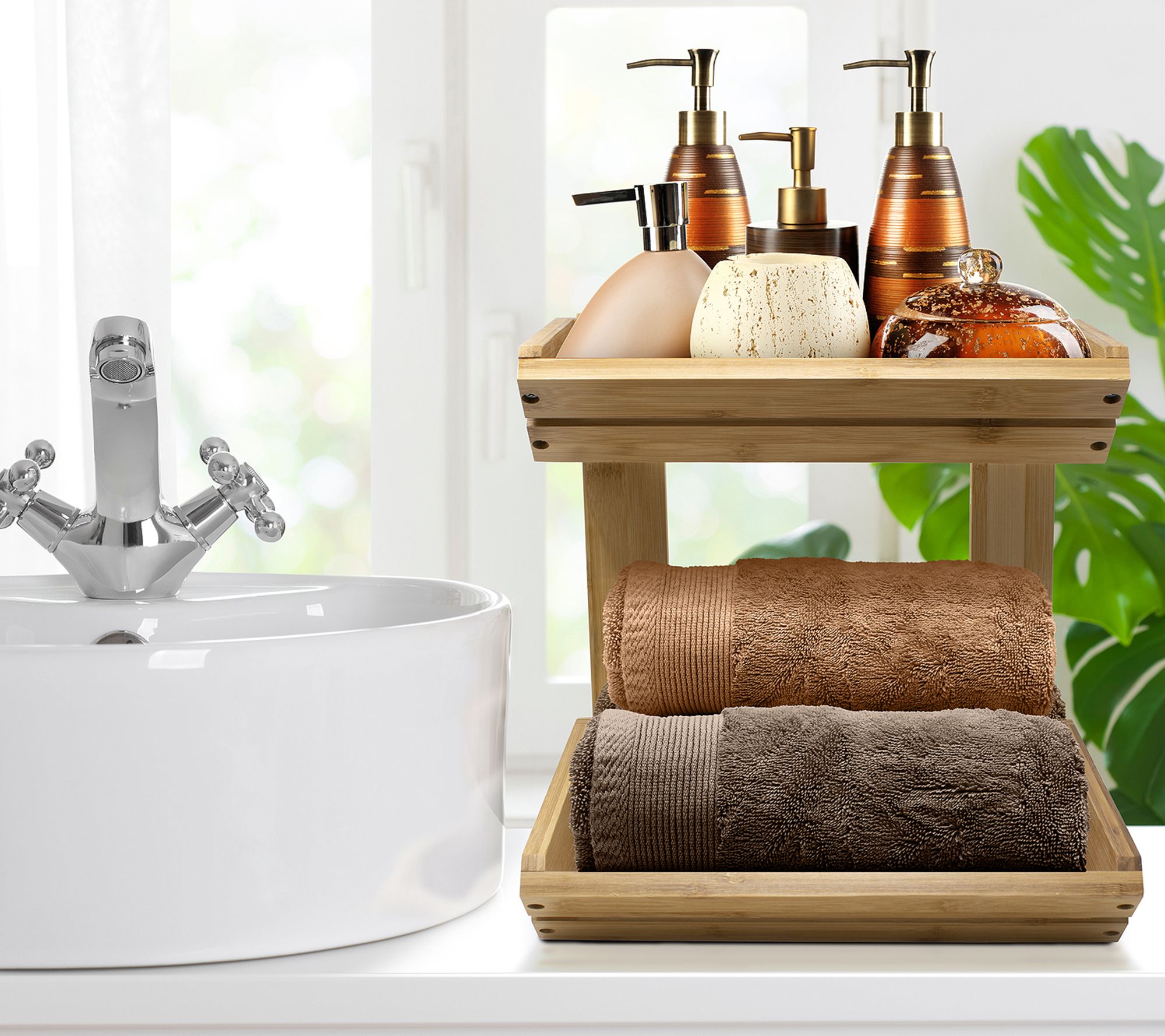 Hold a pile of fruit, a bounty of vegetables, or a bathroom's worth of toiletries with this two-tiered bamboo storage rack. From Sorbus.