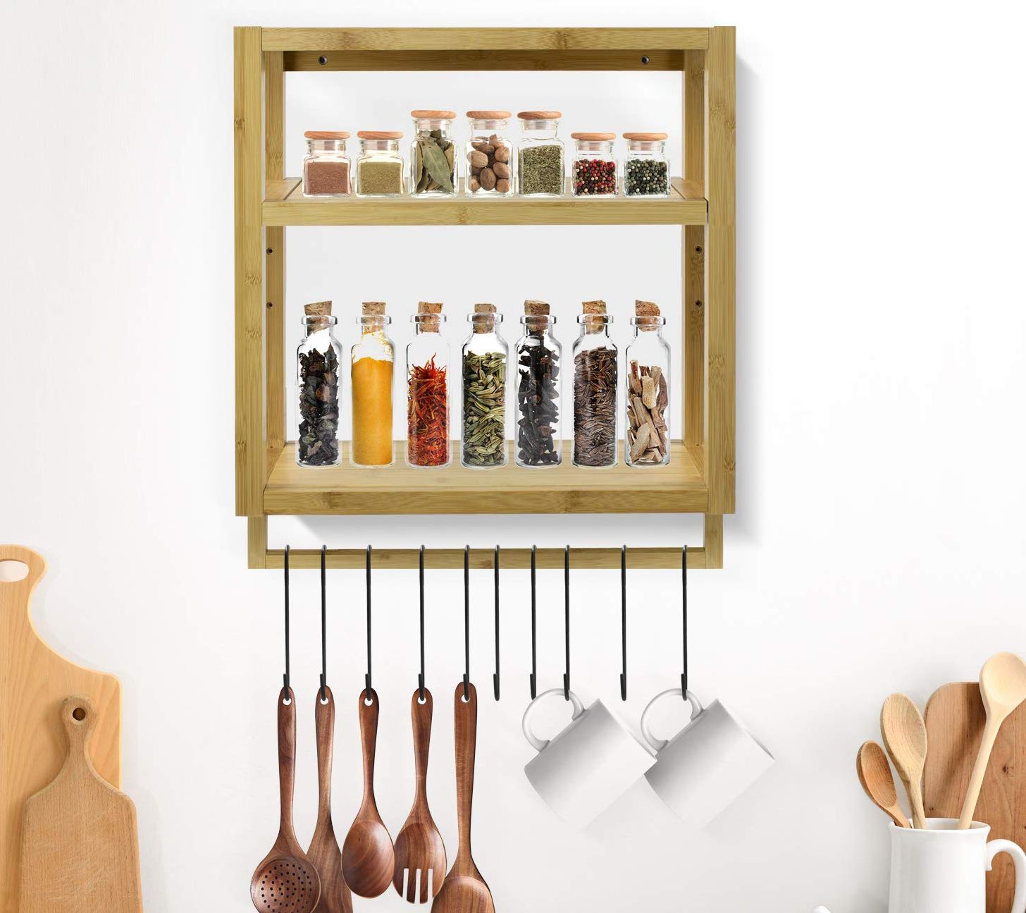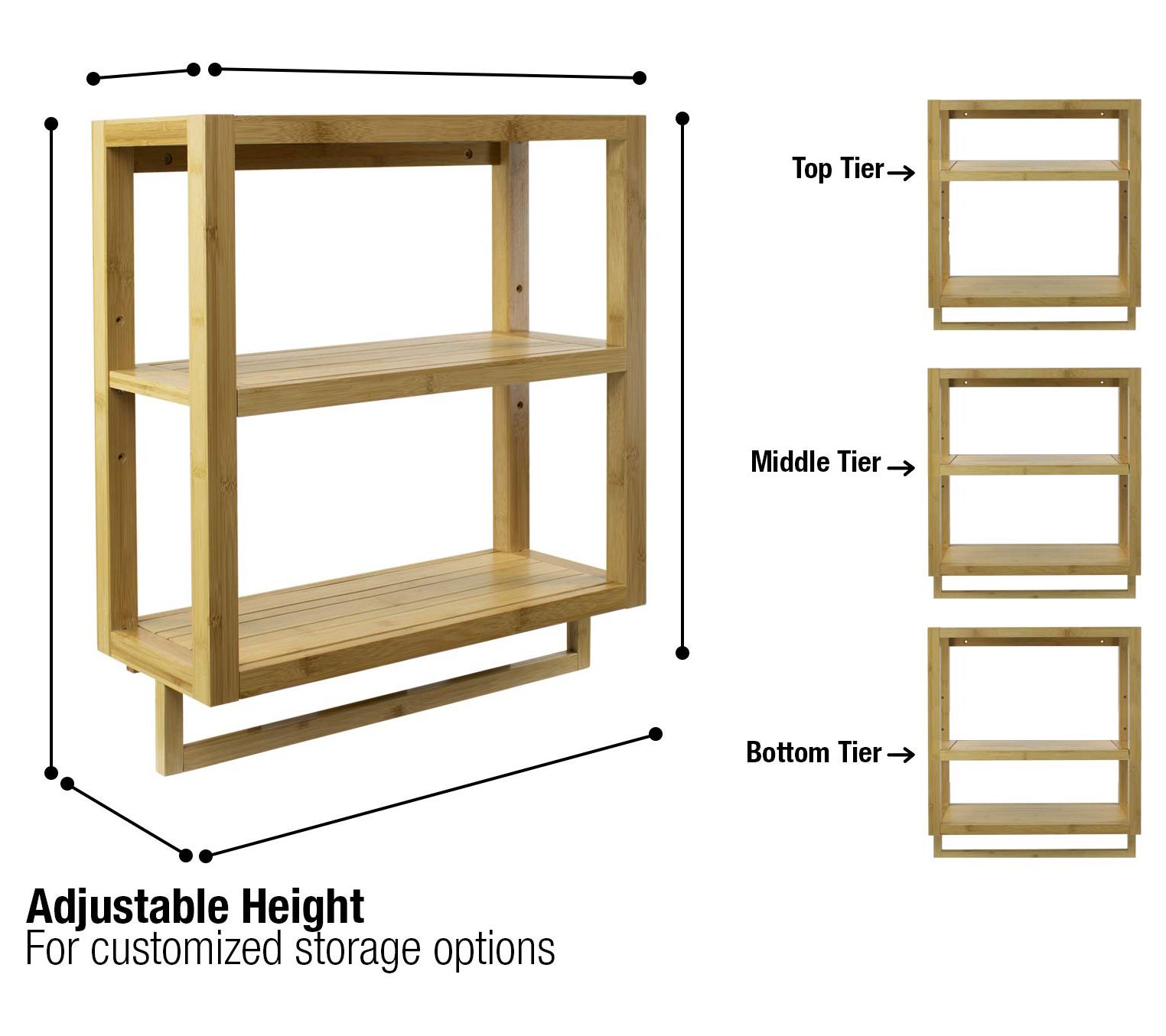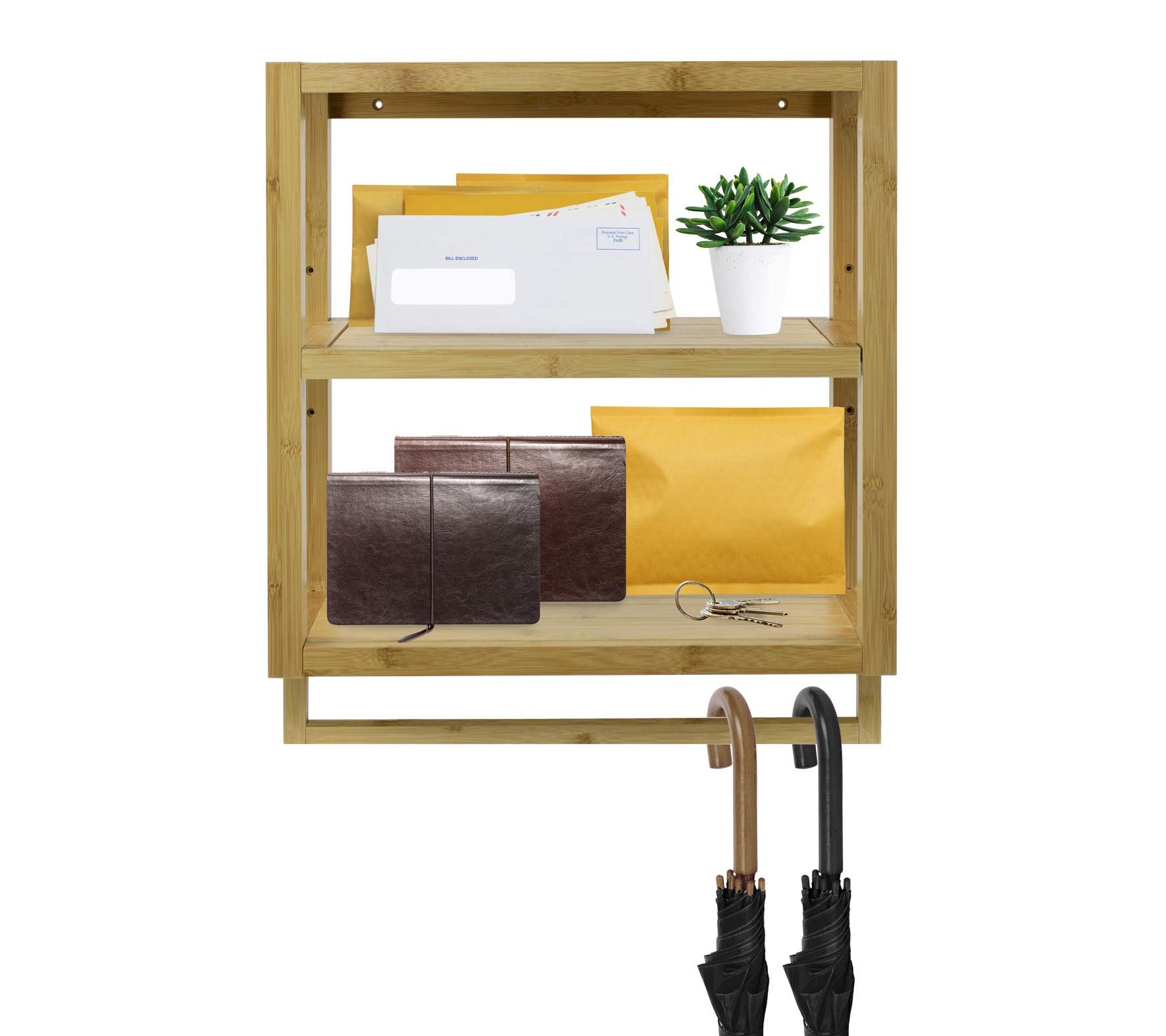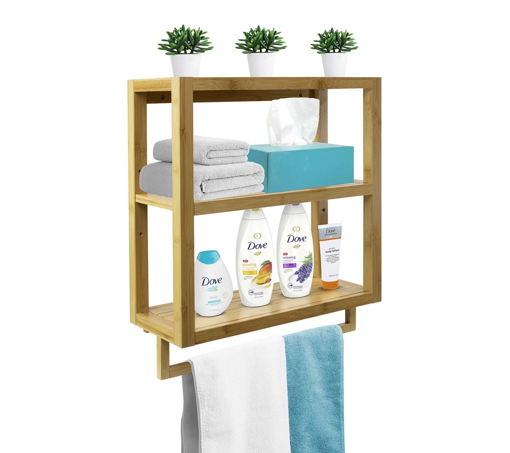 Whether holding towels and toiletries in a bathroom, or storing spices and utensils in the kitchen, this wall-mounted bamboo shelving system is a stylish addition to any room. From Sorbus.