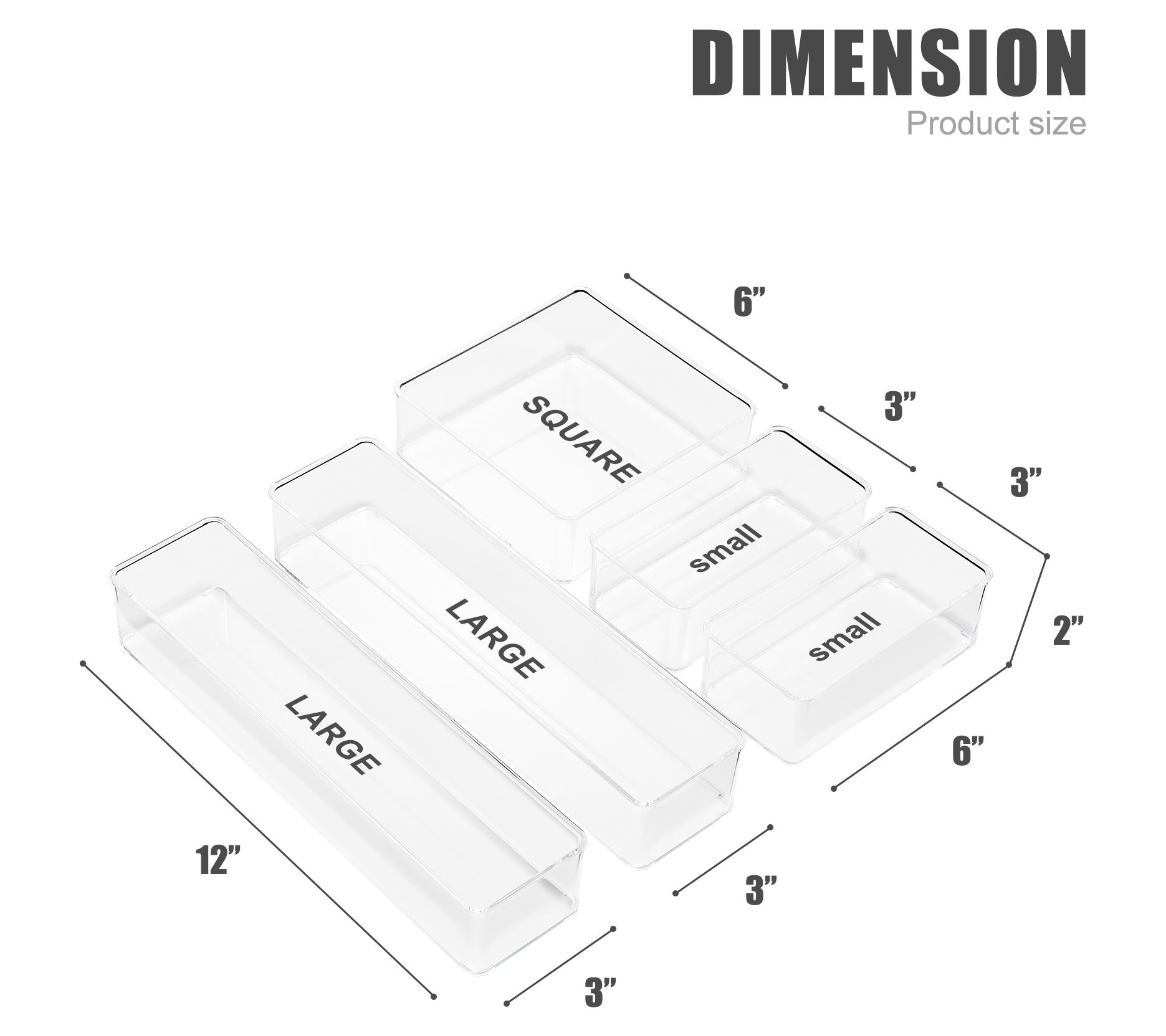 Sorbus Clear Ac rylic 5-Piece K itchen Drawer O rganizer Set