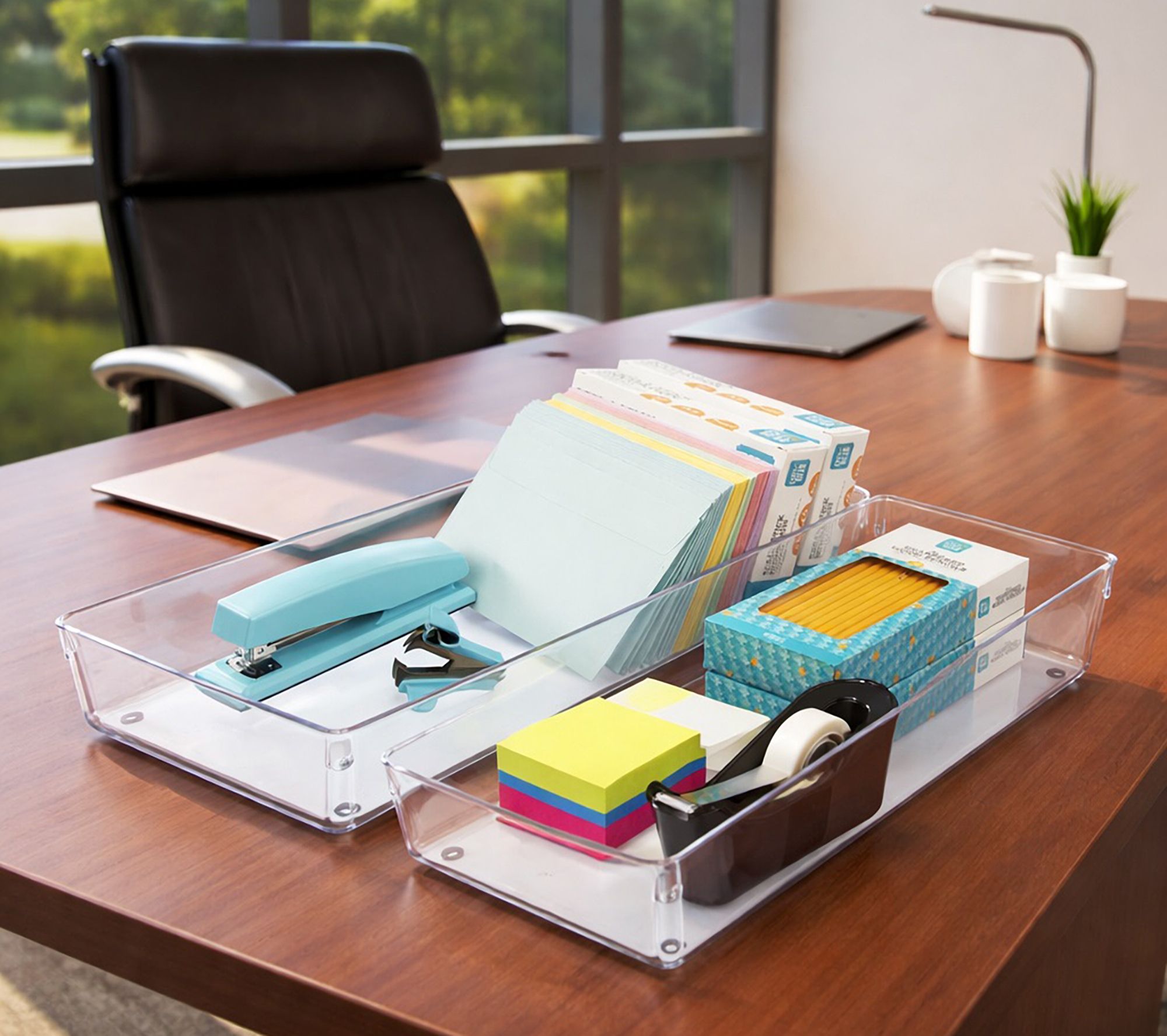 Keep your space tidy with this set of clear drawer organizers. They sport spacious designs to fit a variety of items and help keep your desktop clean from clutter. From Sorbus.