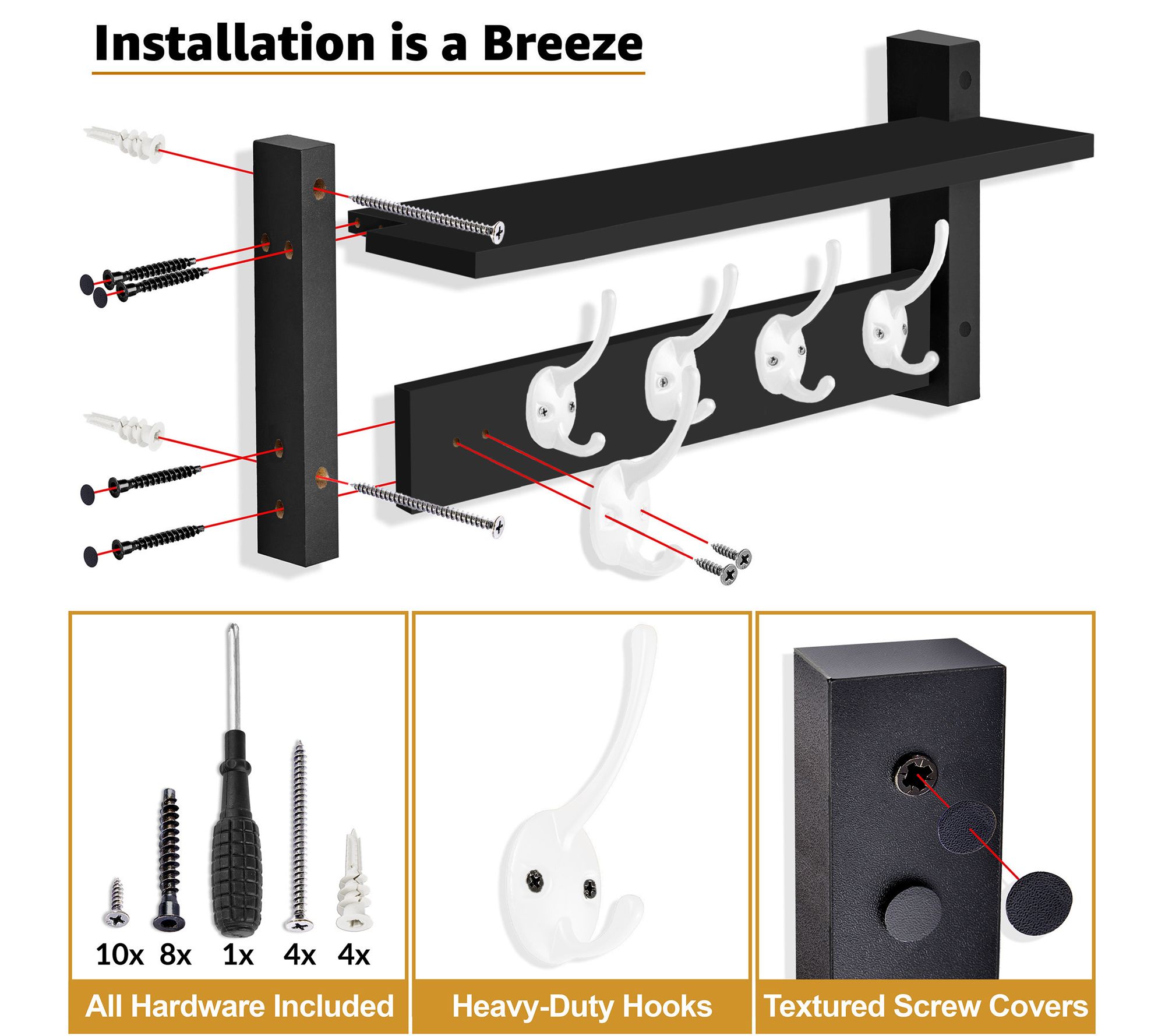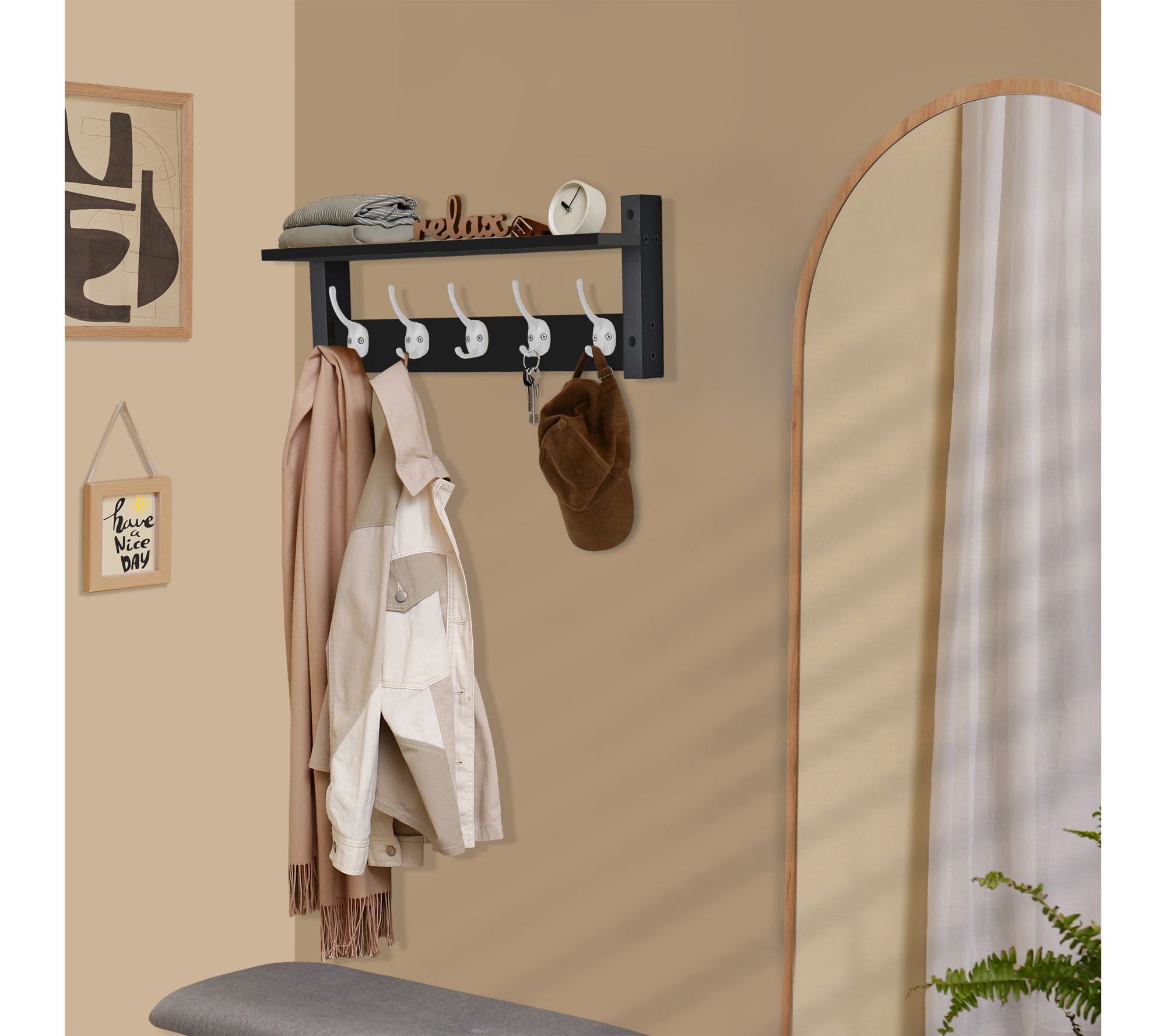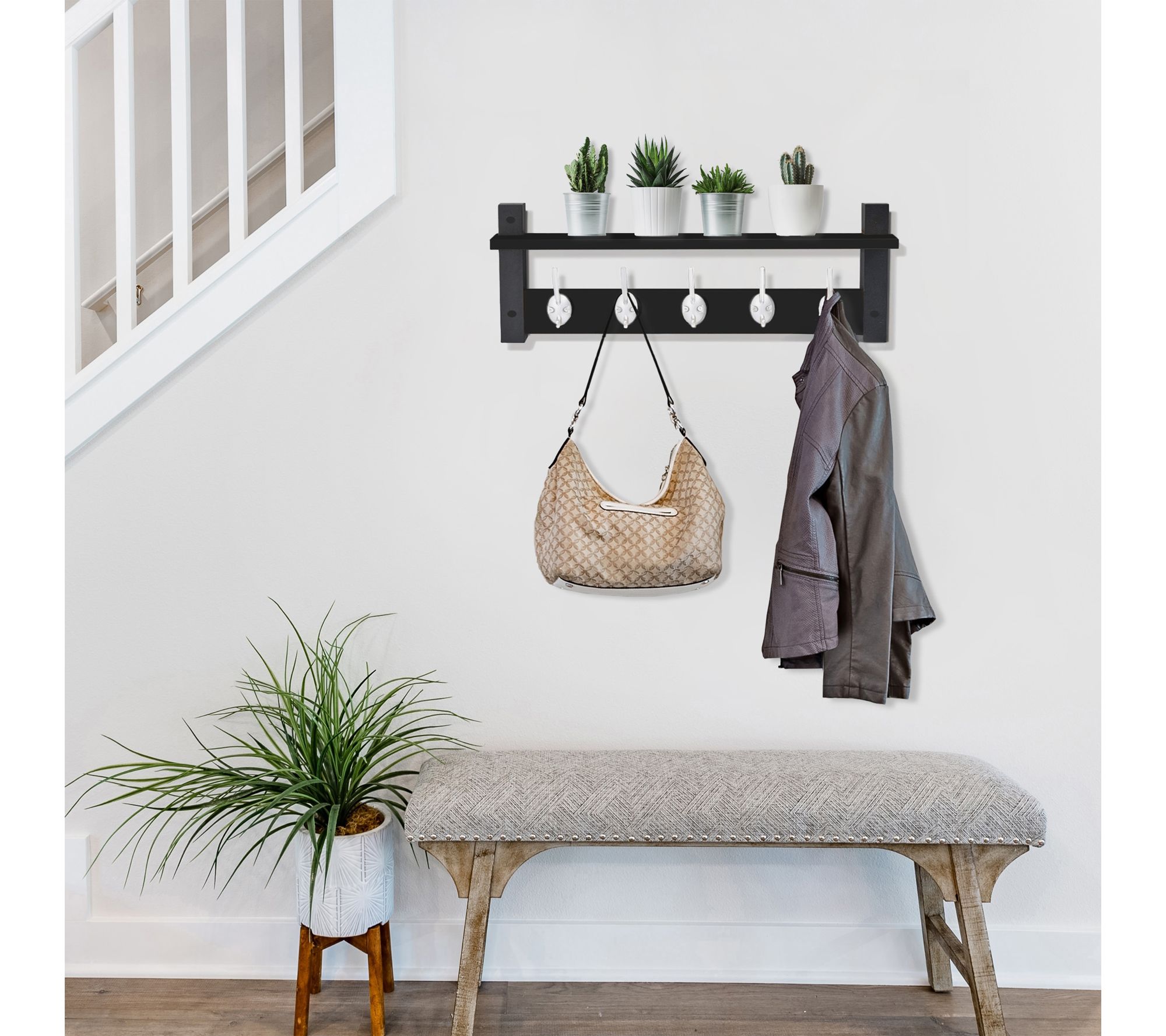 Give your hallway, entryway, or bedroom a stylish boost with this wall-mounted coat rack. With a handy shelf on top and multiple hooks below, there's room for storing jackets, bags, hats, and more -- making it easy to keep everyday essentials neat and ready to go. From Sorbus.