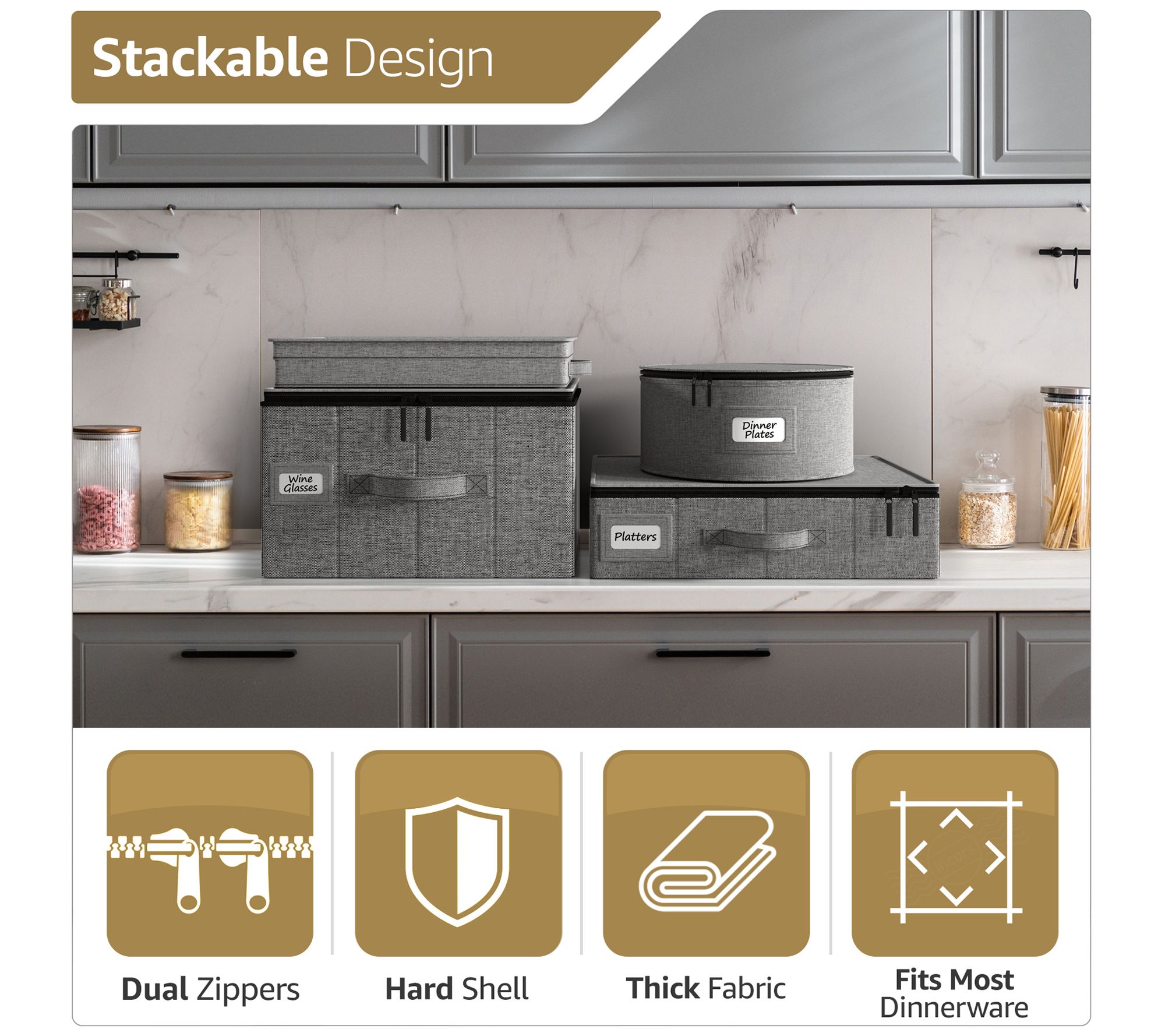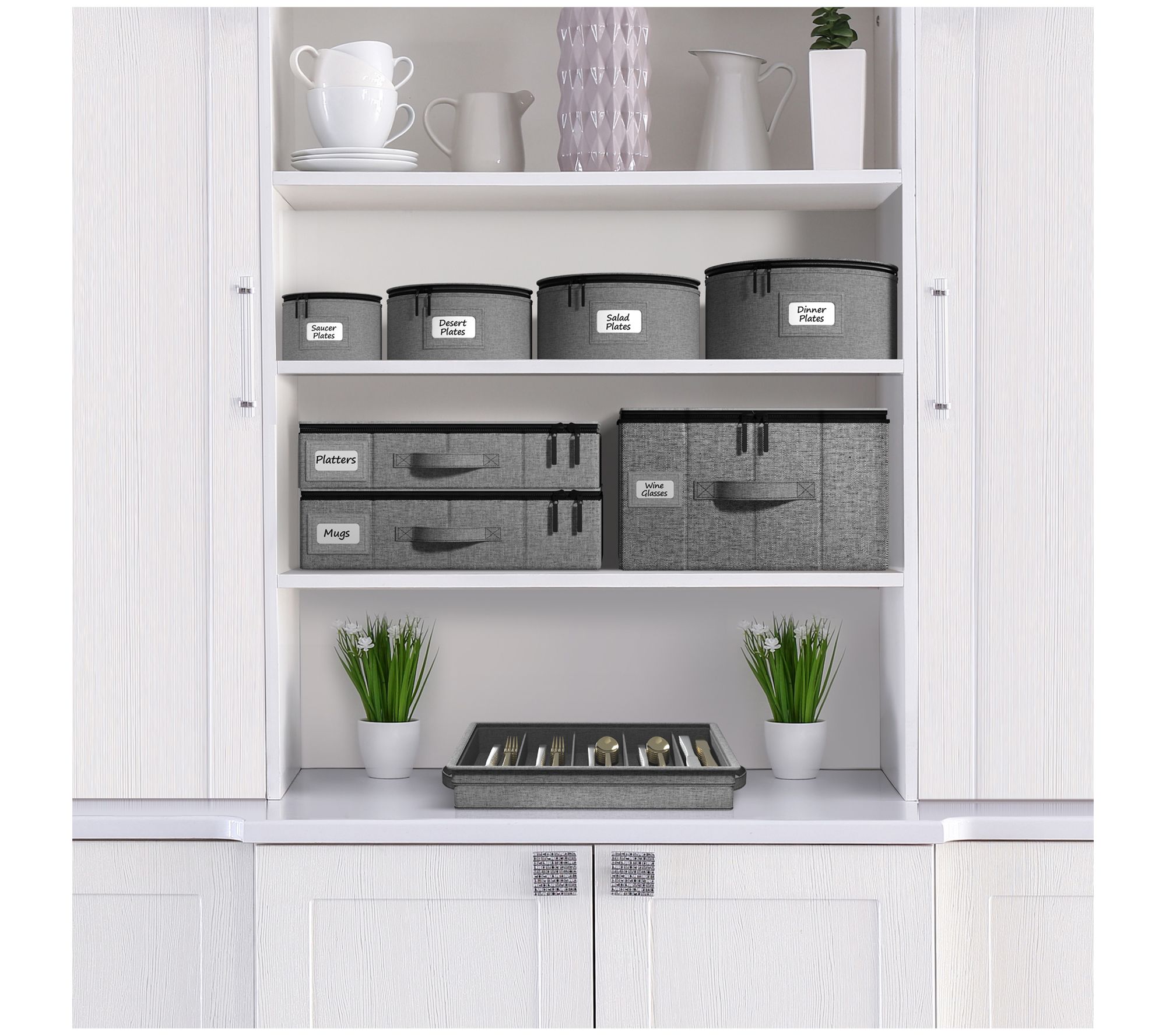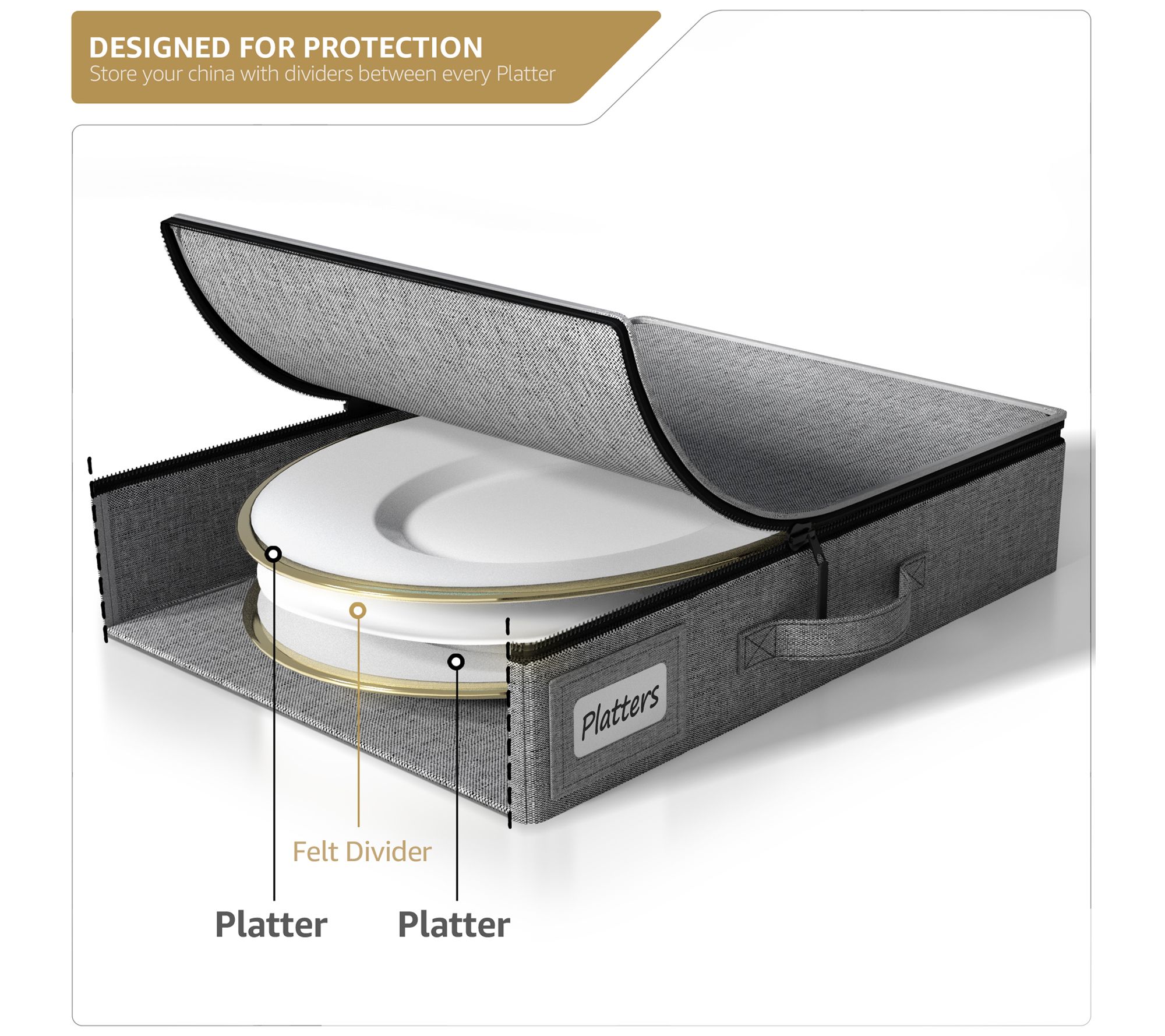 Keep your cherished dinnerware safe and organized with this storage case. Designed to protect your serving platters and dishes, this case features a hard-shell exterior, a soft padded interior with felt dividers, and convenient carry handles for easy transport. The clear-label windows ensure quick identification, making this an ideal solution for storage in cabinets, attics, or while traveling. From Sorbus.