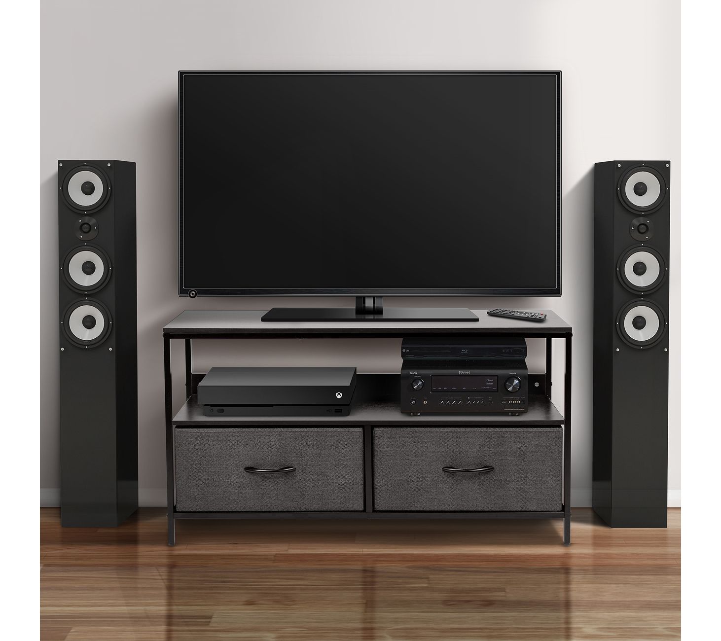 Add a charming and functional touch to your entertainment space with this sleek dresser, featuring a middle shelf and two drawers to tuck away household clutter. From Sorbus.