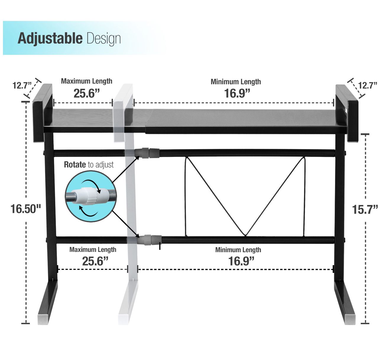 • Measures 25.6"L x 12.7"W x 16.5"H (fully expanded); supports up to 55 lbs