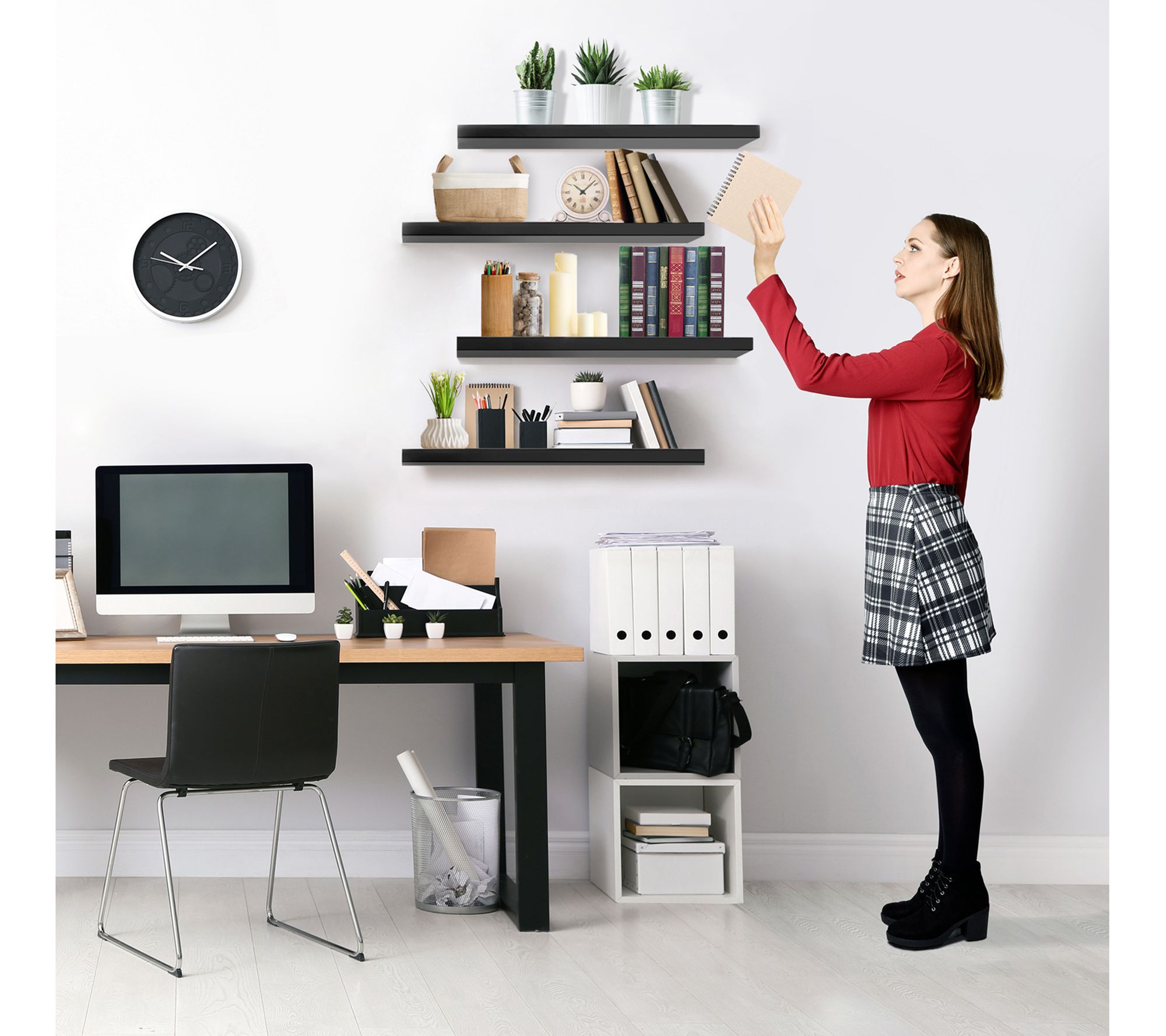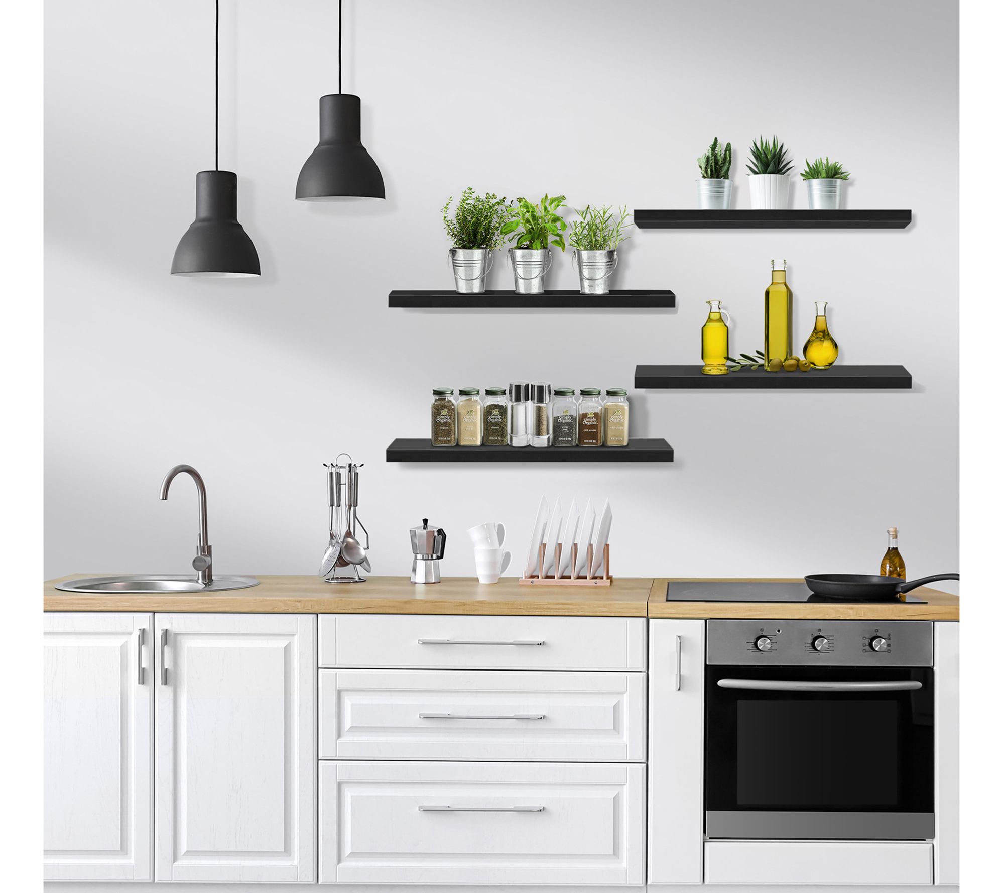 Enhance your home's style and functionality with Sorbus floating shelves. These versatile faux wood shelves add character to any space, whether above a desk, fireplace, or in the bathroom. Install them vertically for a streamlined look or stagger them for visual interest. Perfect for displaying prized possessions, toiletries, or kitchen essentials. From Sorbus.