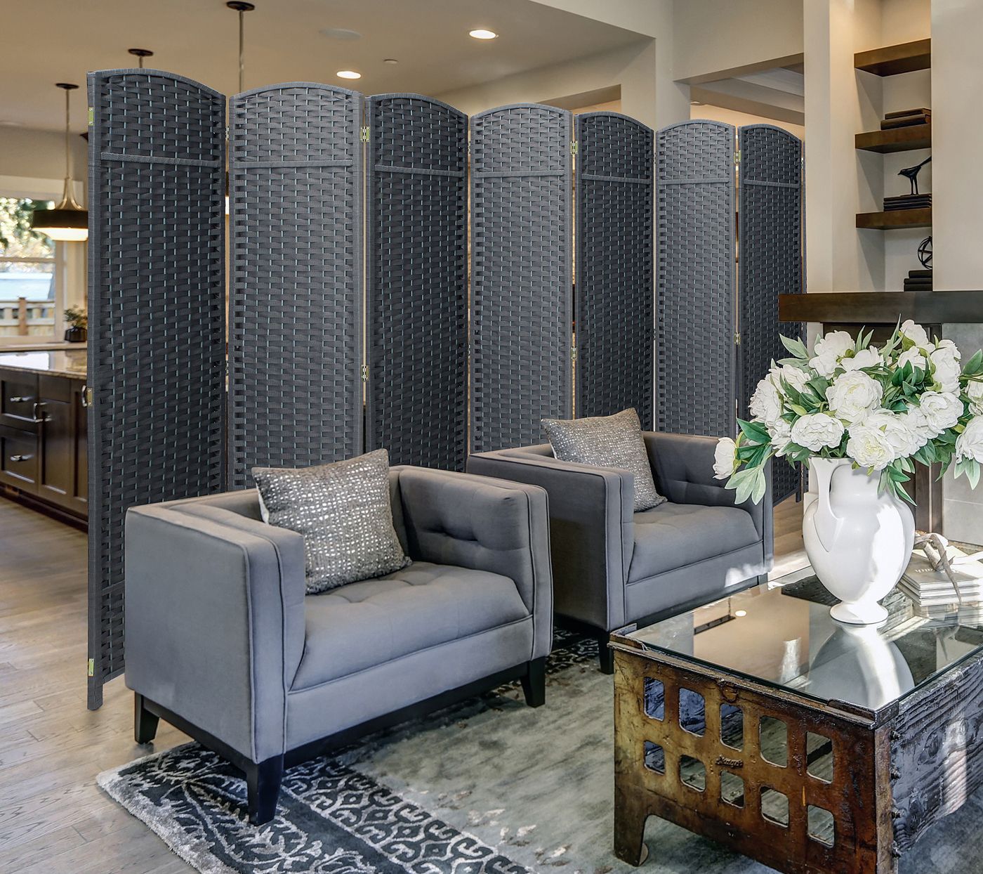 Create privacy with this eight-panel partition that's nearly 6 ft. tall. Whether you're looking for a decorative accent or want to divide a room to create privacy for dressing, hiding unsightly items, sleeping, or relaxing on your patio or porch, this partition-style screen is foldable and requires no assembly. From Sorbus.