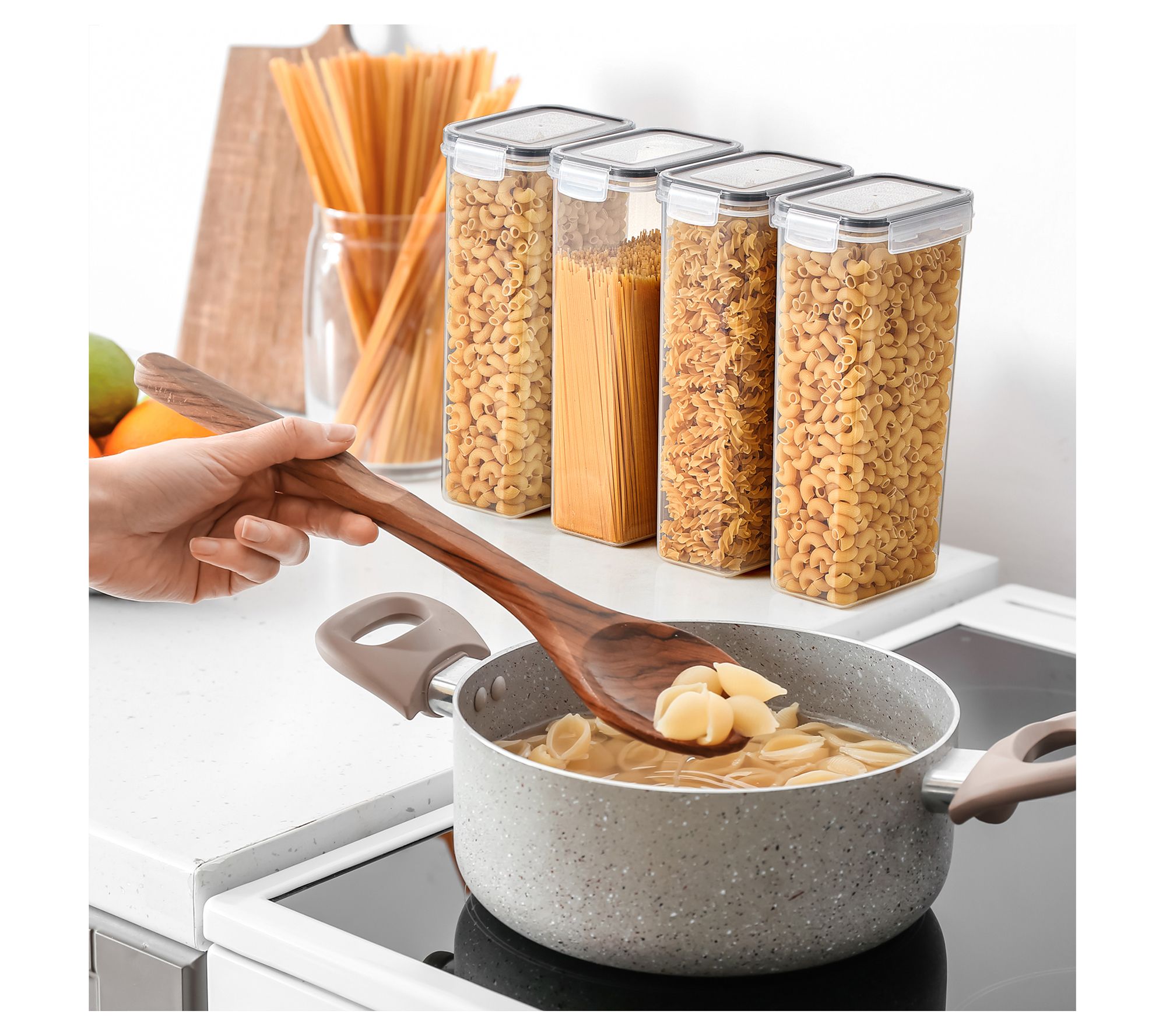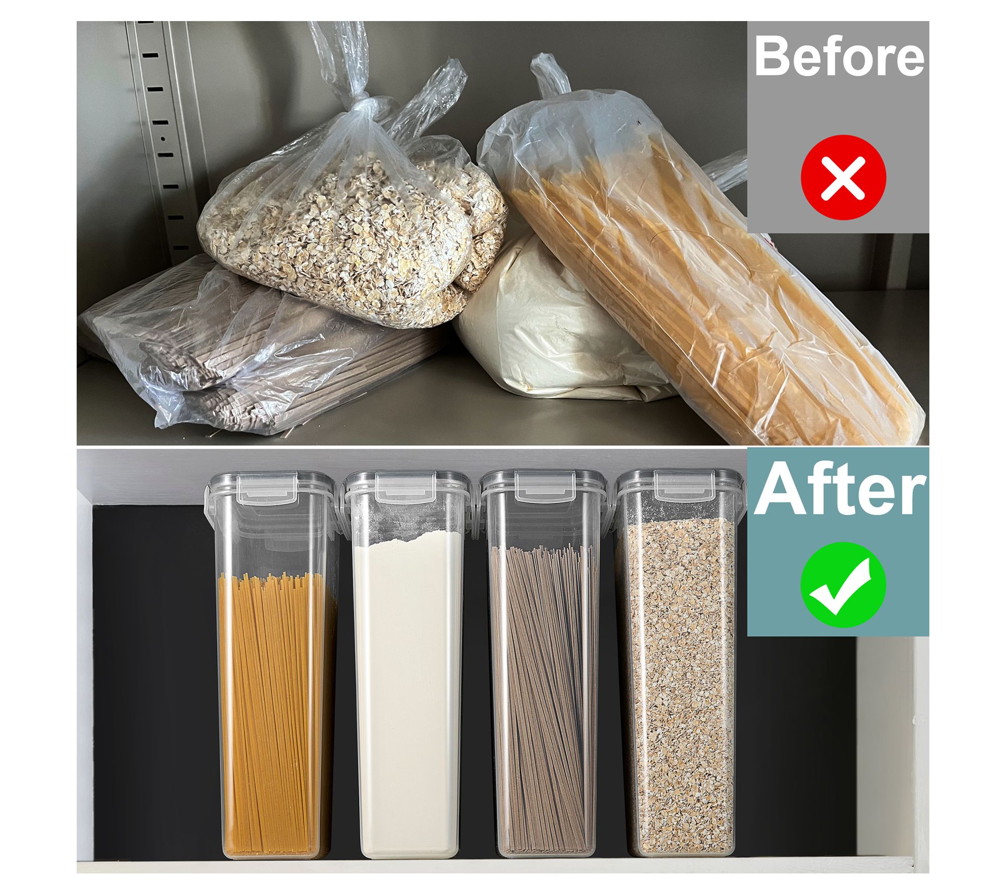 • Includes two tall food dispensers, two lids, 24 chalkboard labels, one chalkboard marker, and five measuring spoons