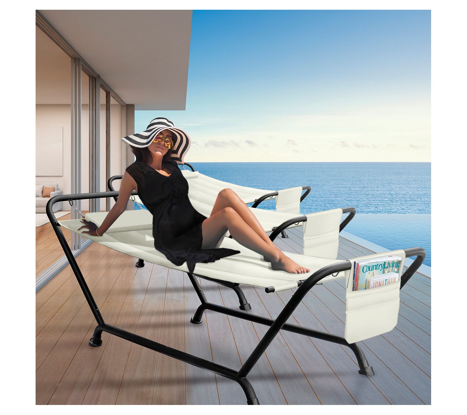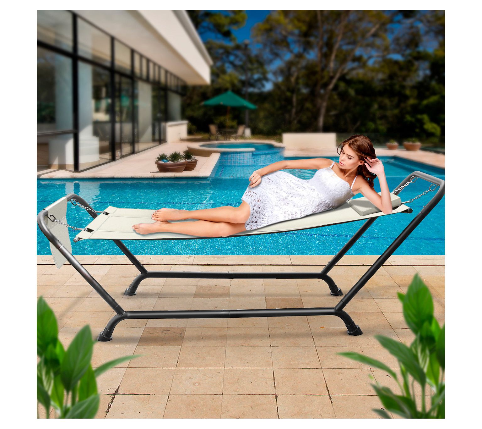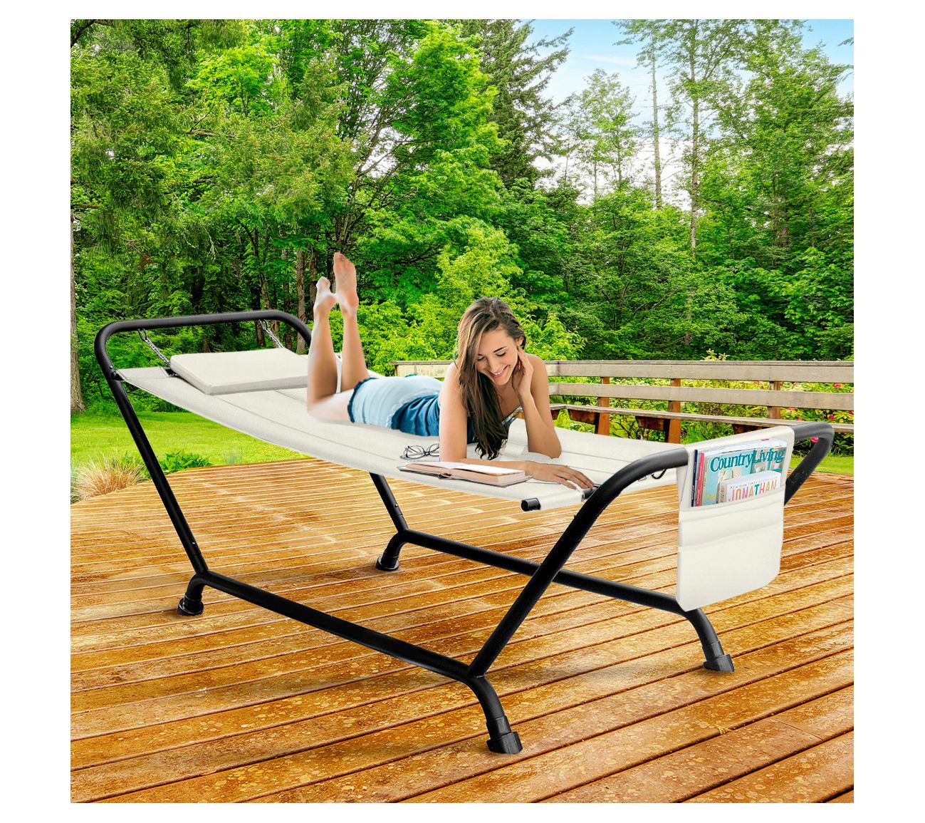Transform your outdoor space with the Sorbus hammock bed. Perfect for patios, decks, or camping, this hammock offers ultimate relaxation without needing trees. Its freestanding design features sturdy chains, a removable support pillow, and a storage pocket for your essentials. From Sorbus.