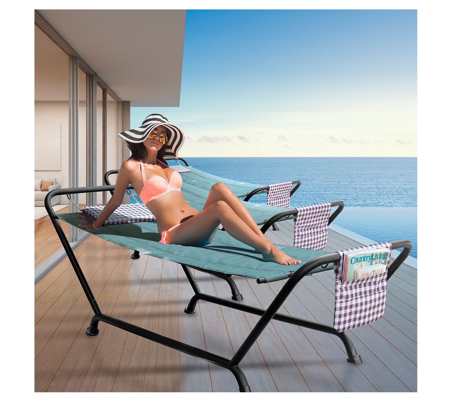 Lounge poolside or take an afternoon nap under a favorite tree when you have this comfortable hammock, featuring a detachable pillow and storage for a phone, book, or bottle of water. From Sorbus.