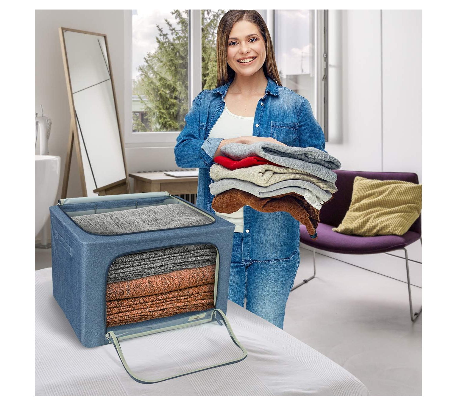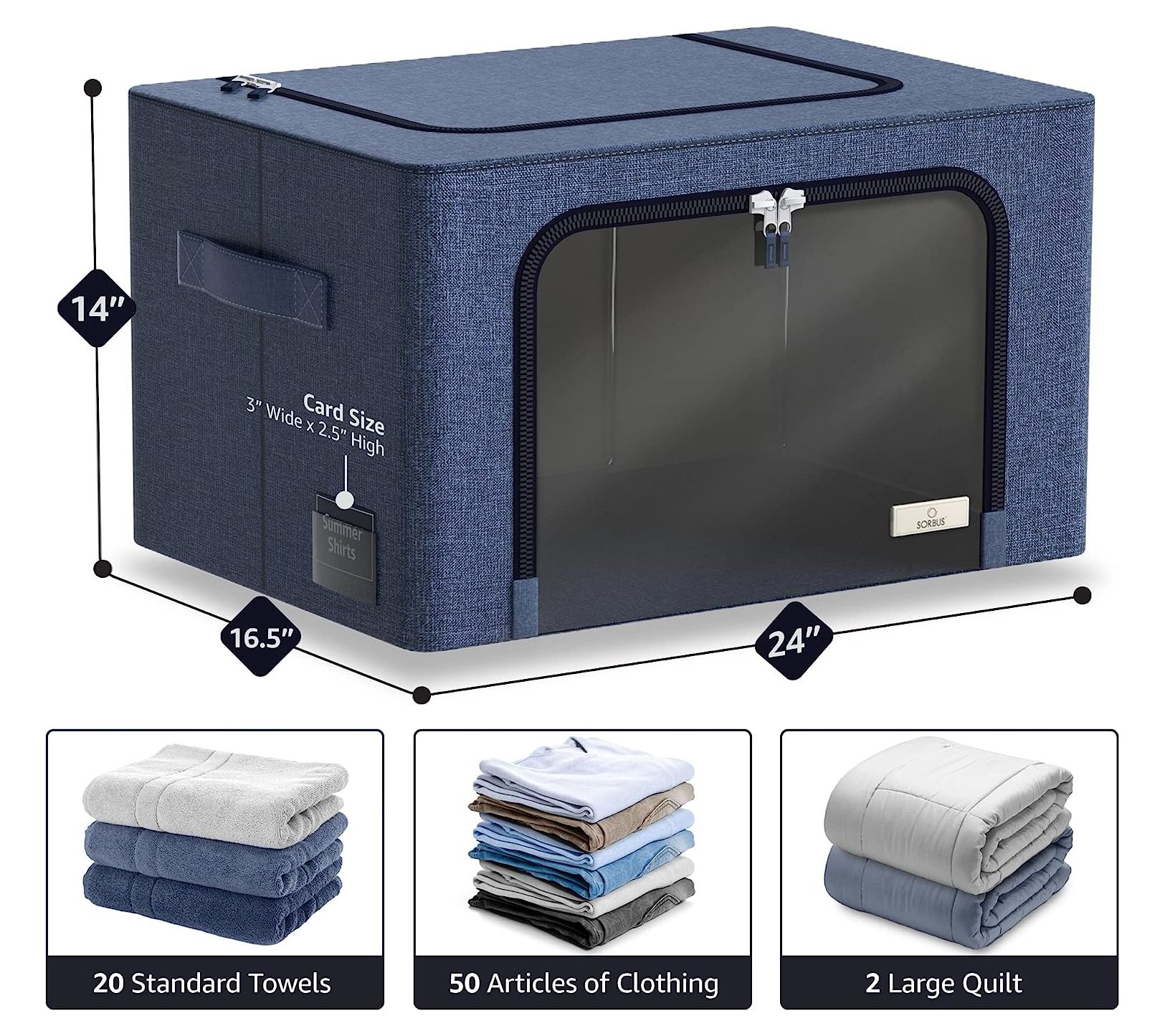 Keep your home organized with this jumbo-sized storage bin. Featuring a clear window for easy content viewing and a zippered flap door, this bin is perfect for protecting and storing clothing, bedding, toys, and more. Its sturdy metal wire frame ensures it maintains shape, while the collapsible design allows for convenient, space-saving storage when not in use. From Sorbus.