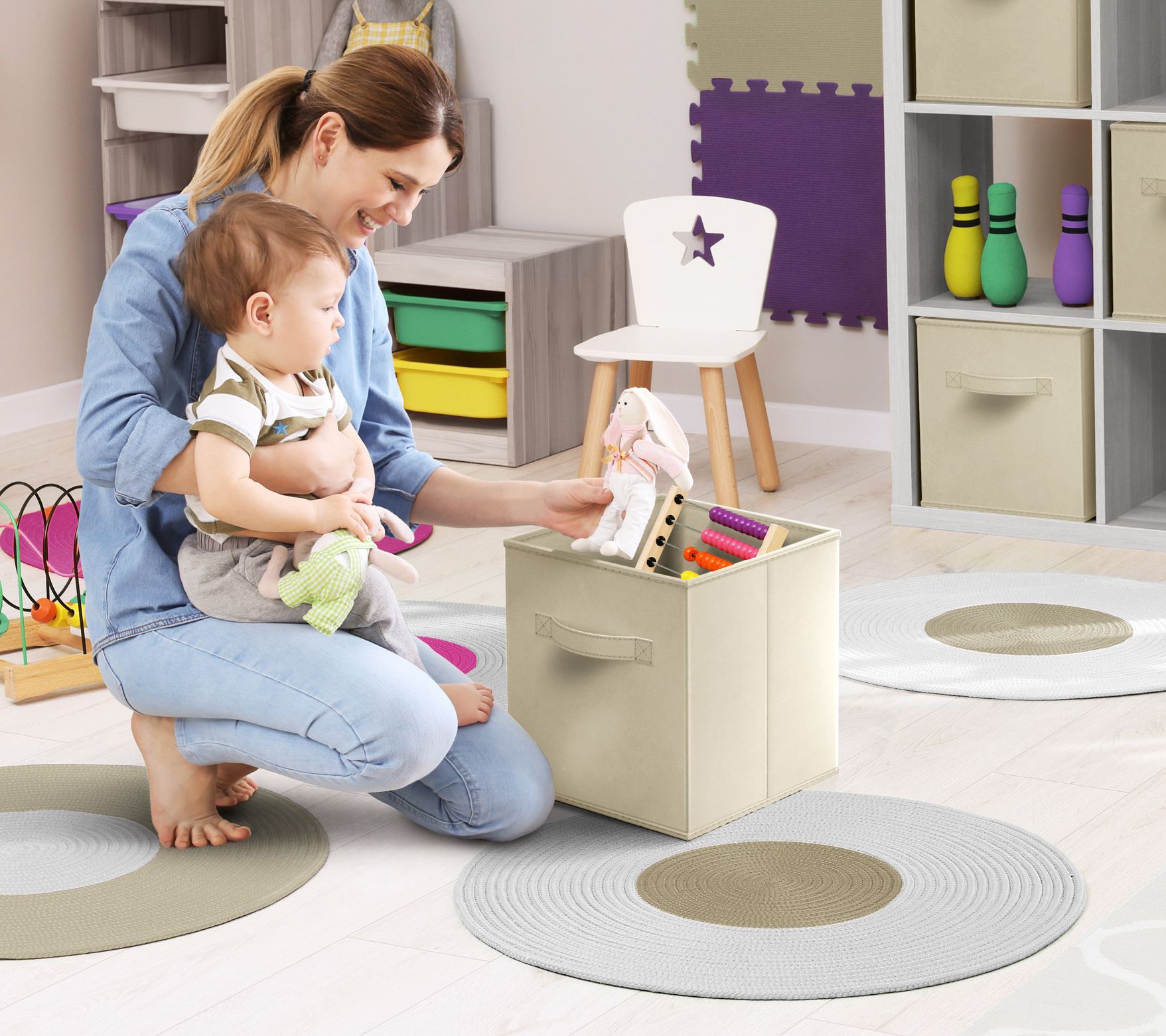 Organize your home or office efficiently with these large storage bins. Their versatile design makes them ideal for closets, nurseries, and other spaces, accommodating everything from clothes to toys. Easy to assemble and transport, these bins save space by folding flat when not in use. From Sorbus.