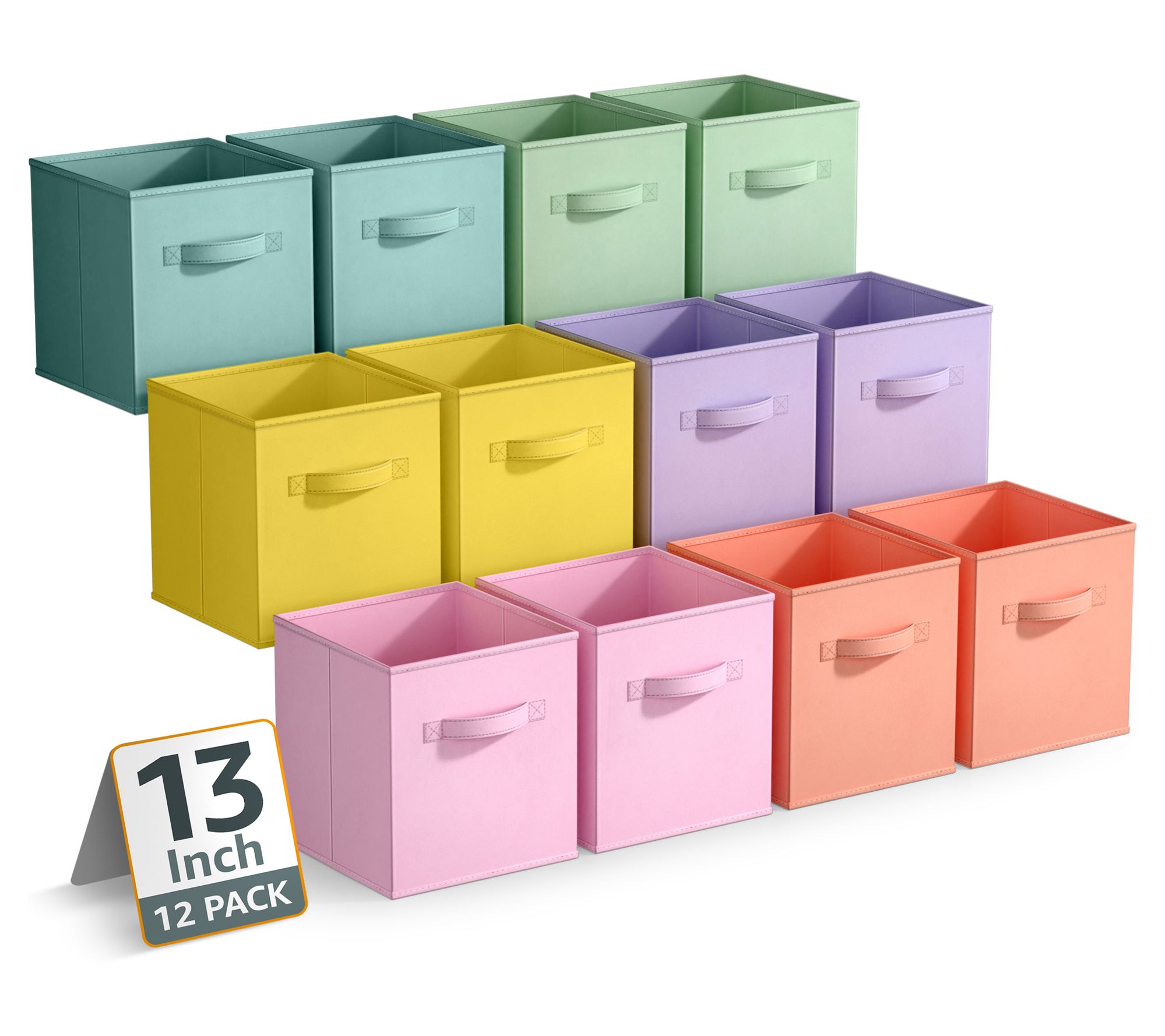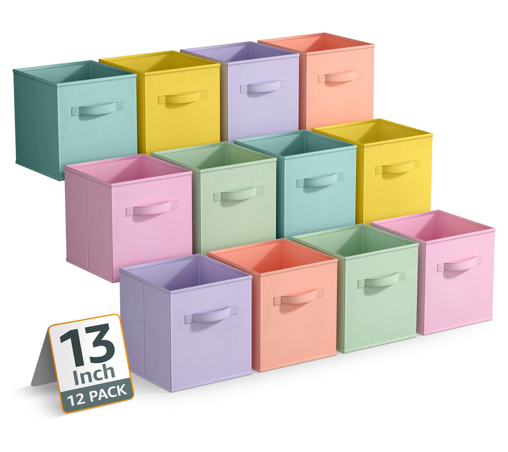 Sorbus Large 13" Storage Bins with Handles, 12Pk Pastel Set 1