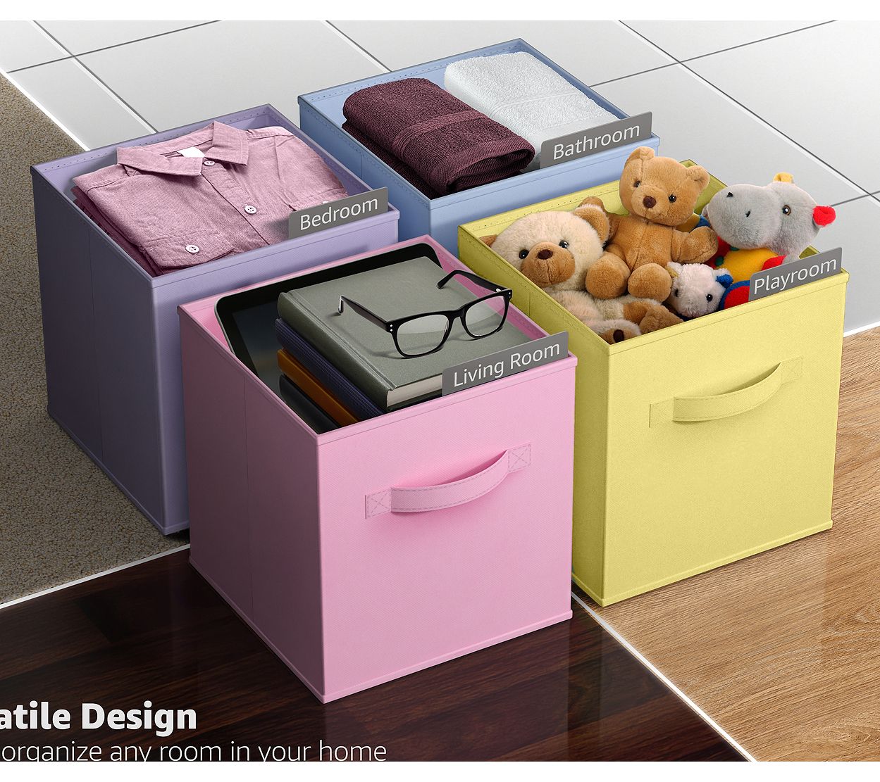 Transform your home or office with these Sorbus foldable storage cubes, perfect for organizing games, crafts, toys, books, clothes, and more. These versatile pastel-colored bins easily fit into closets, bookcases, or on desks, and can be folded flat when not in use to save space. From Sorbus.