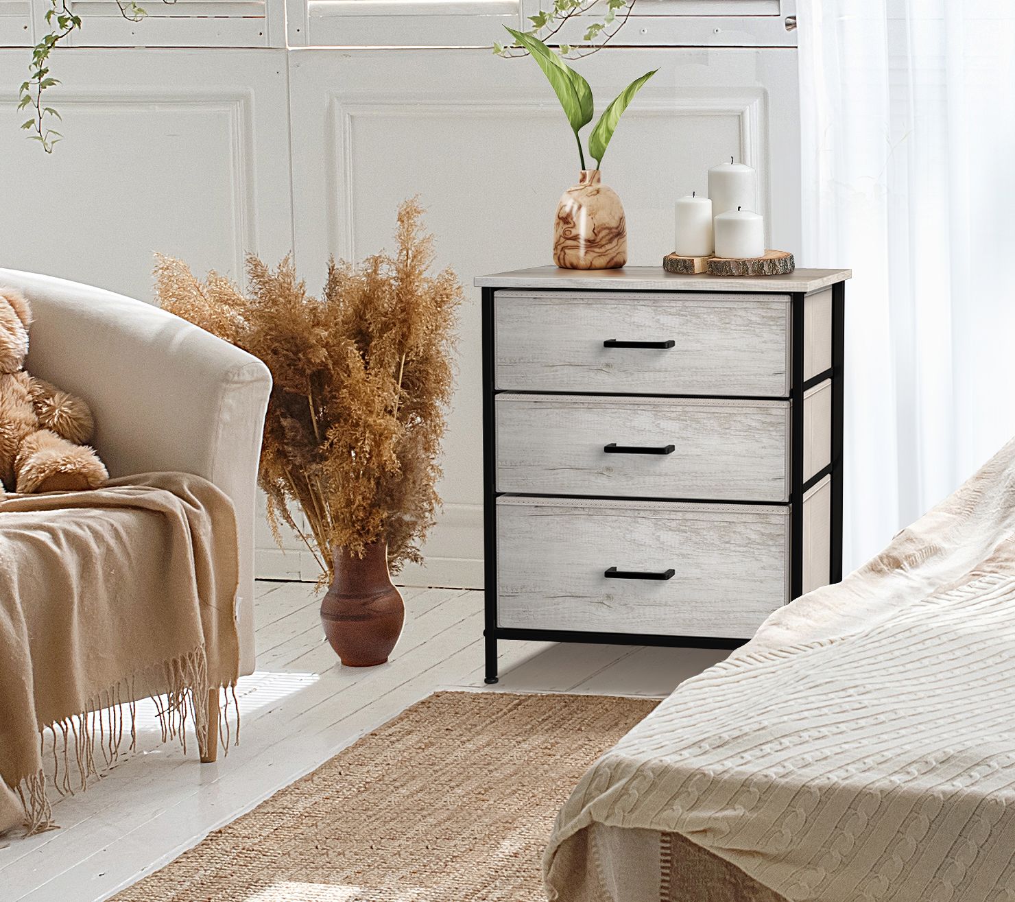 With a hard surface on top and three fabric drawers underneath, this attractive storage solution helps you make the most of every space, including dorm rooms, apartments, home offices, children's rooms, and playrooms. From Sorbus.
