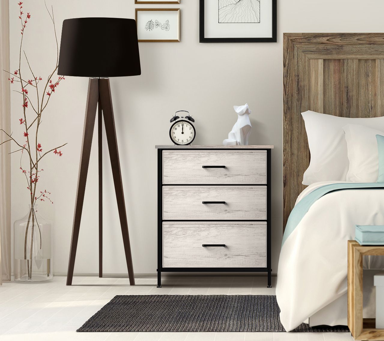 Sorbus Nightstand Dresser with 3 Faux-Wood Draw ers