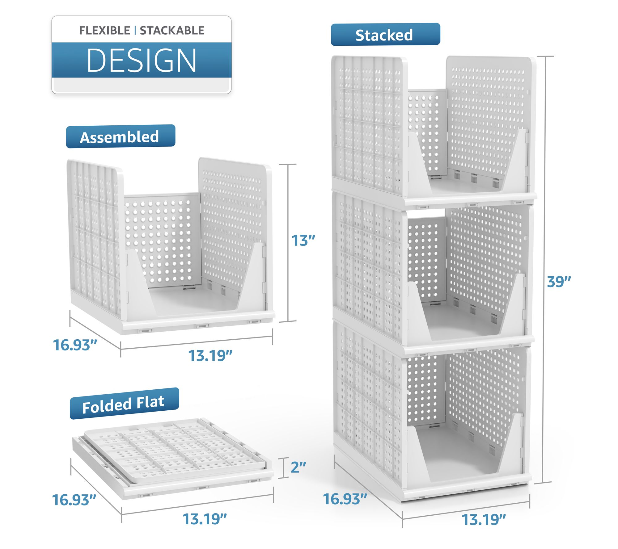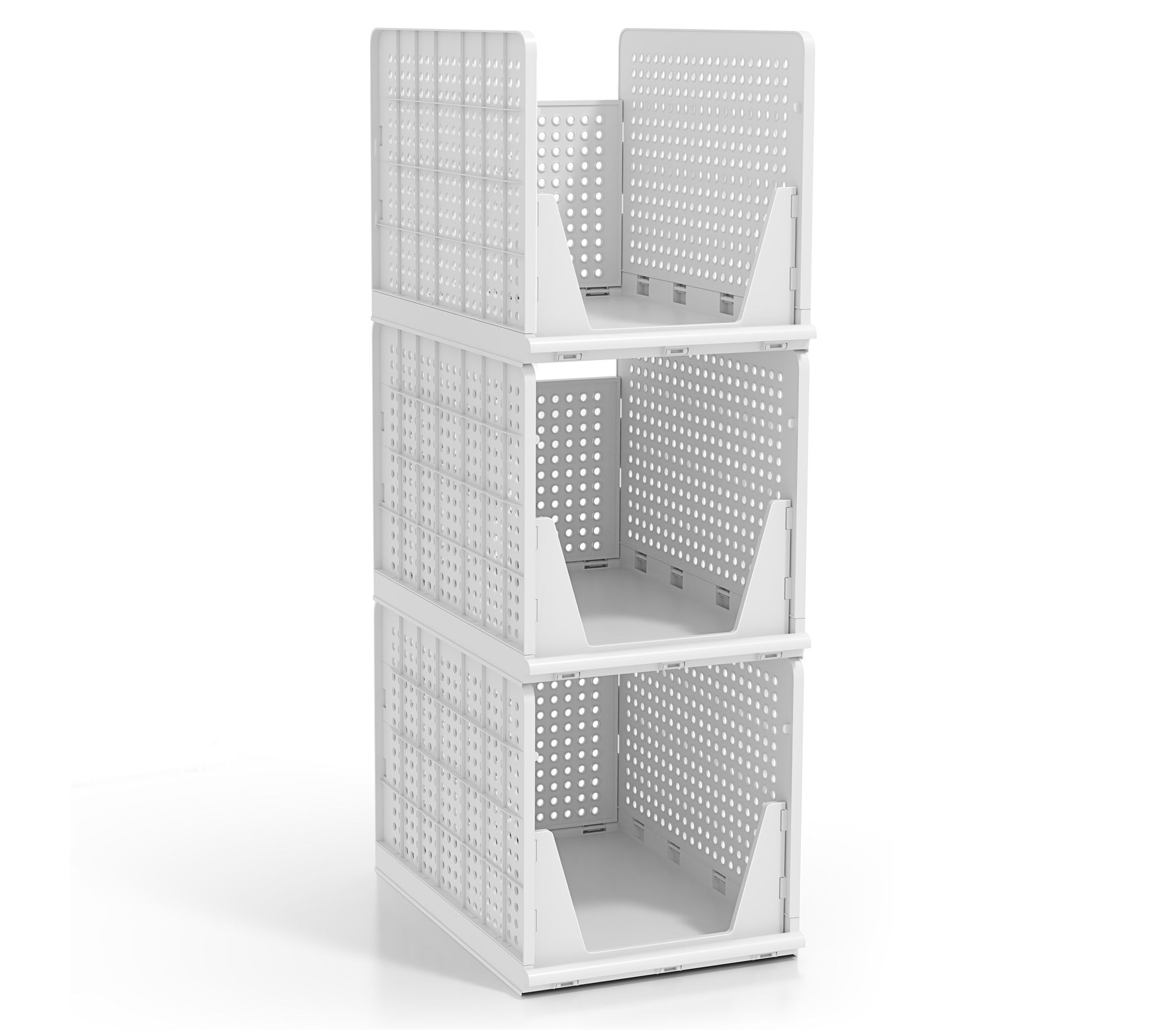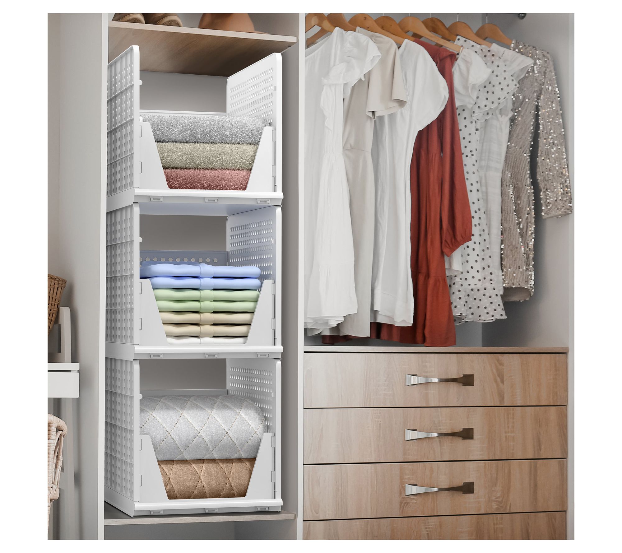 • Stackable baskets ideal for neatly organizing clothes, linens, toys
