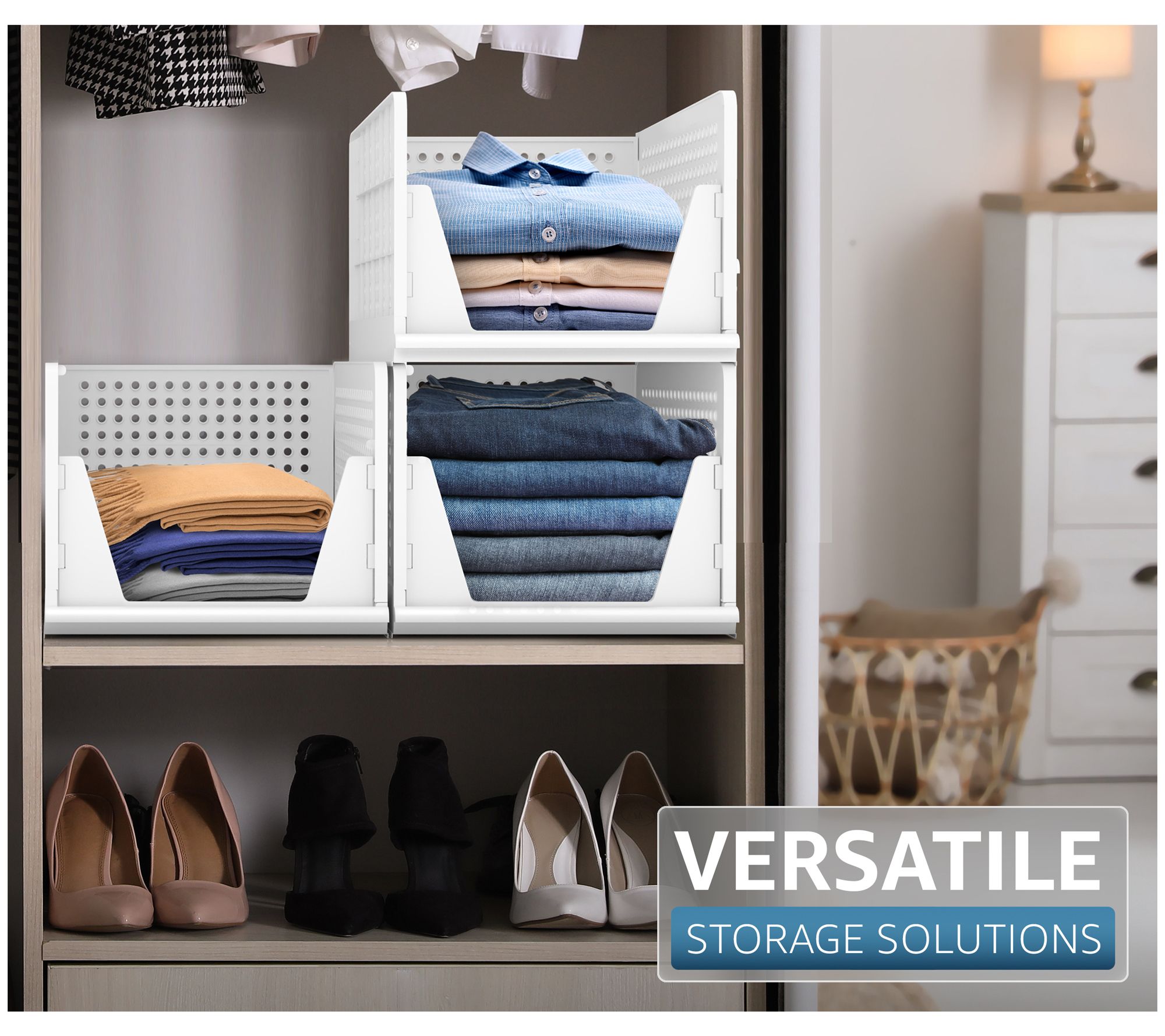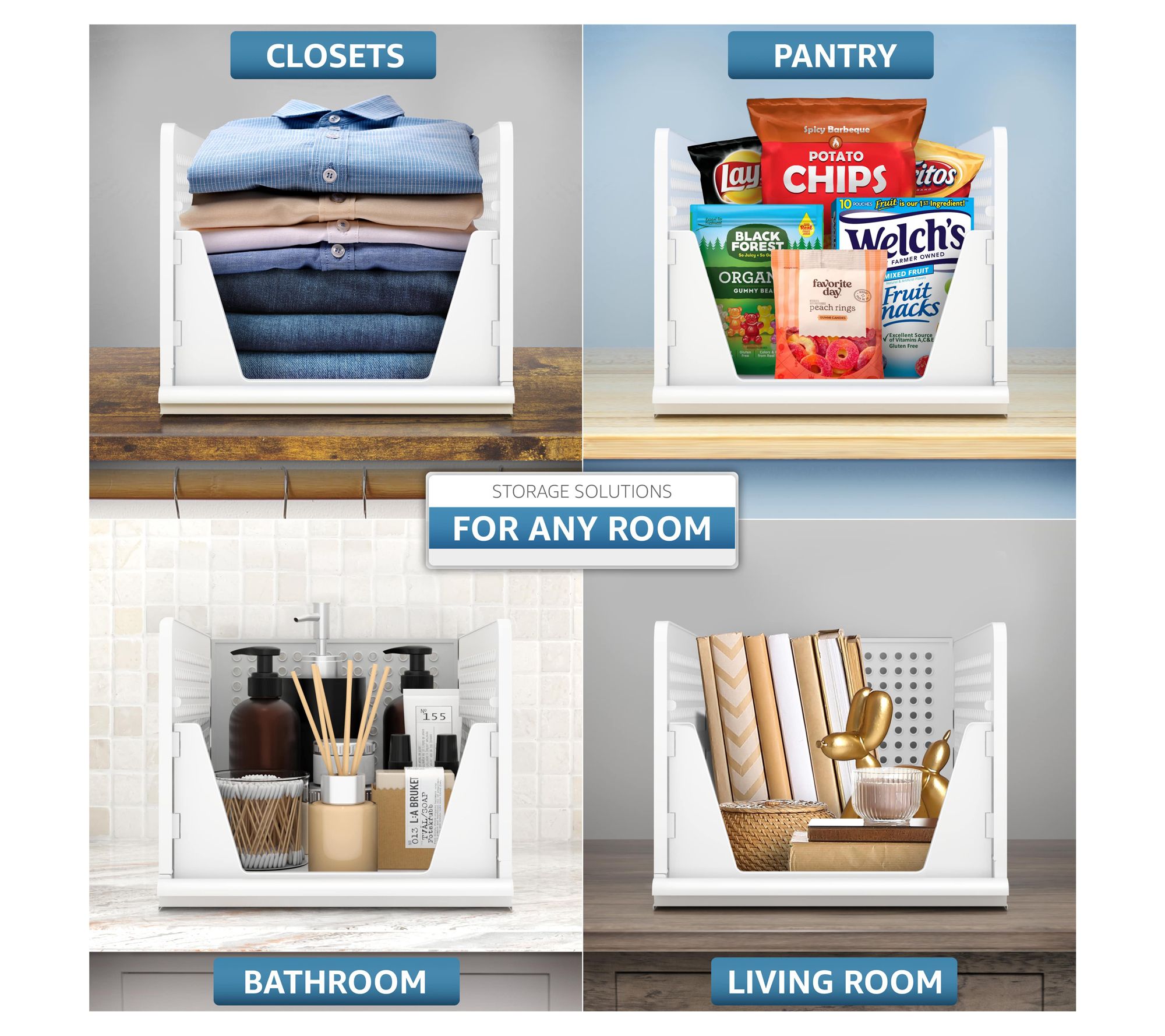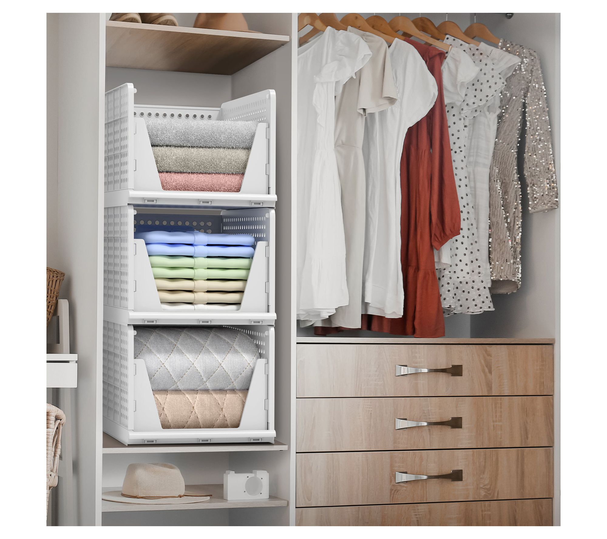 Transform your space into an organized oasis with these large-size Sorbus closet shelf organizers. Whether in your bedroom, bathroom, or pantry, these versatile and stackable storage bins are perfect for decluttering and maximizing vertical space. Store clothes, linens, toys, pantry items, and office supplies effortlessly. From Sorbus.