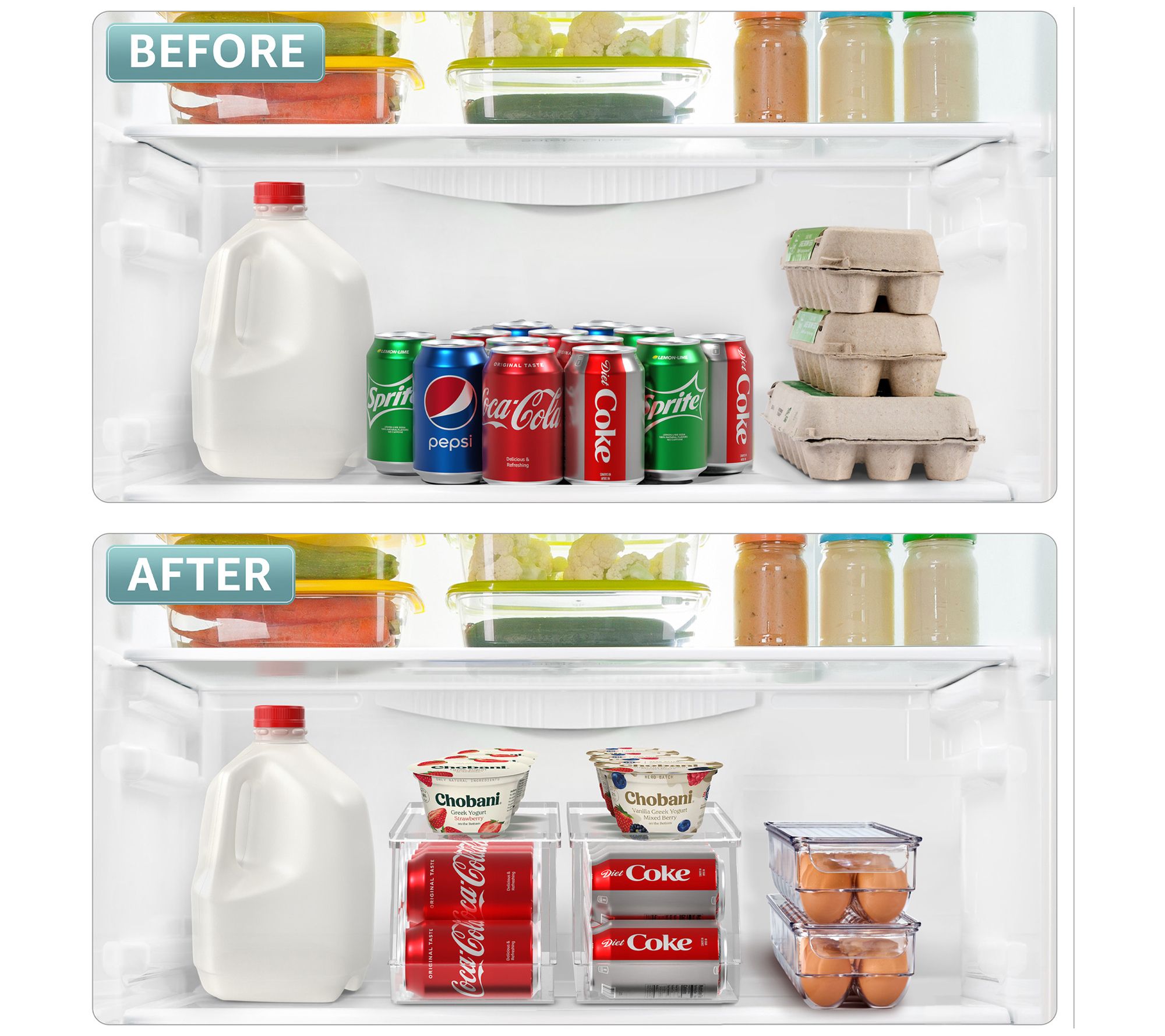 Transform your refrigerator into an oasis of organization with this can organizer and egg holder set. This dynamic duo is designed to streamline your storage, allowing for neat arrangement of your favorite beverages and safekeeping of up to two dozen eggs. The can dispenser maximizes space, ensuring your drinks are orderly and accessible, while the egg holder offers a clear view of your egg inventory. Made from durable plastic, these organizers are easy to clean and perfect for busy households. From Sorbus.