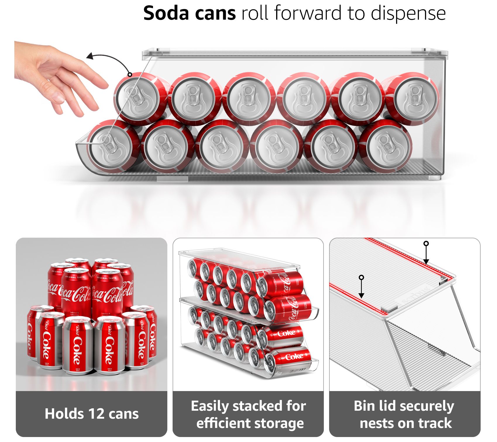 • Includes soda can organizer and egg holder