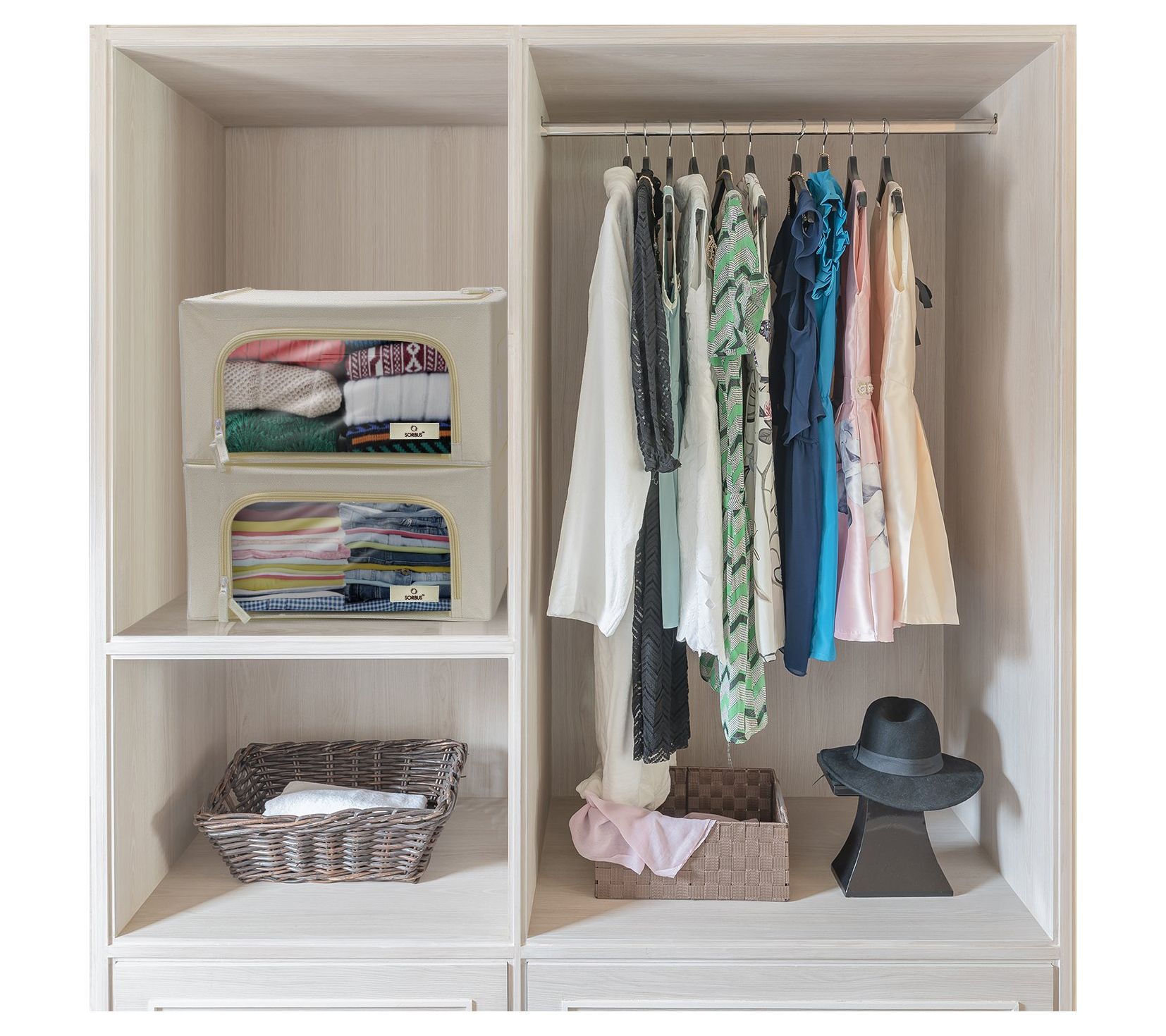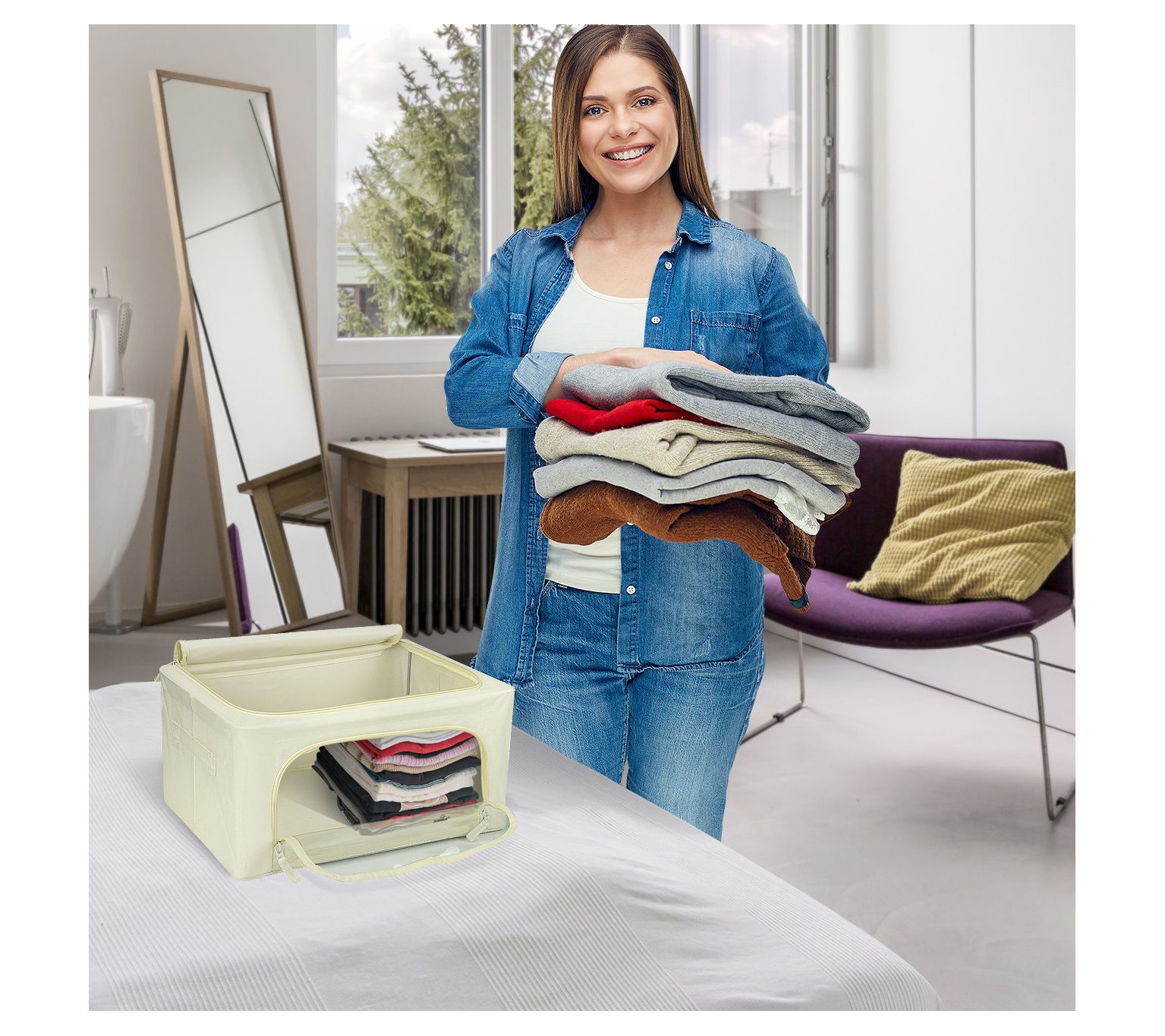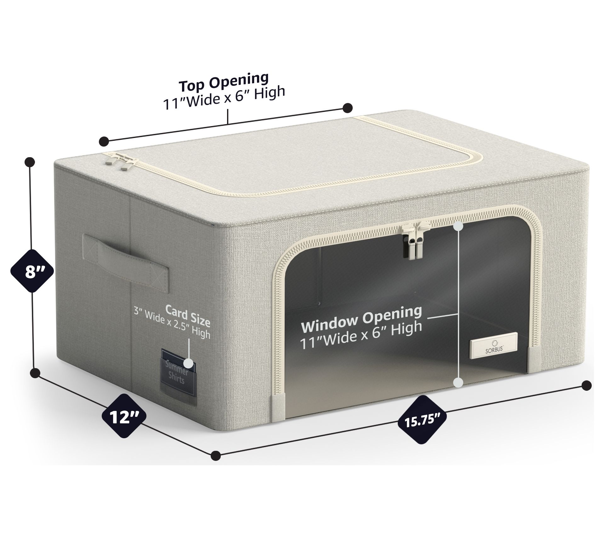 Keep your home organized with this set of fabric storage bins. Featuring a clear window for easy content viewing and a zippered flap door, these bins are perfect for protecting and storing clothing, bedding, toys, and more. The sturdy metal wire frame ensures they maintain their shape, while the collapsible design allows for convenient, space-saving storage when not in use. From Sorbus.
