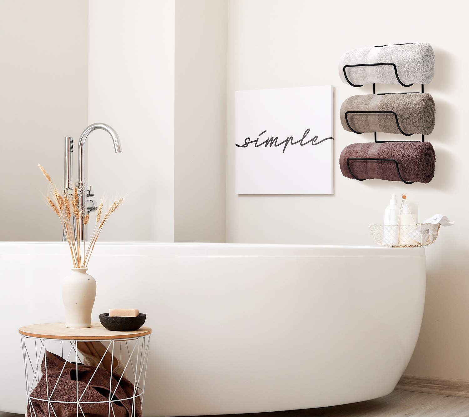 Keep your linens, bath towels, hand towels, or washcloths within easy reach. These two versatile, space-saving wall mount racks are also ideal for kitchen bottles, tea towels or poolside beach towels. From Sorbus.