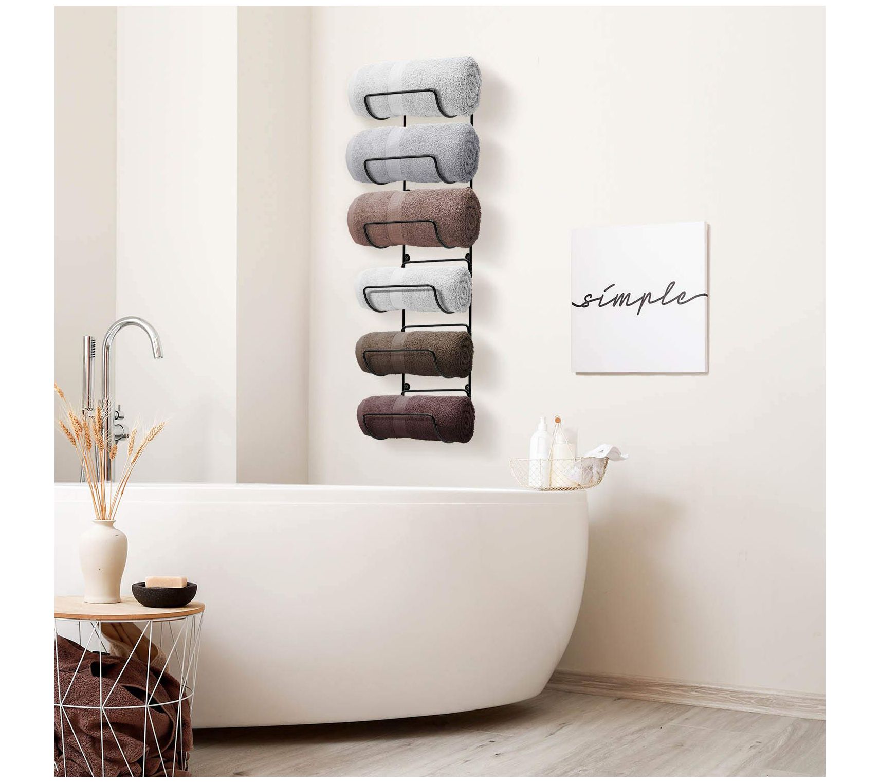A stylish method for saving space, this six-tier wall rack is the perfect way to always have a fresh towel on hand. From Sorbus.
