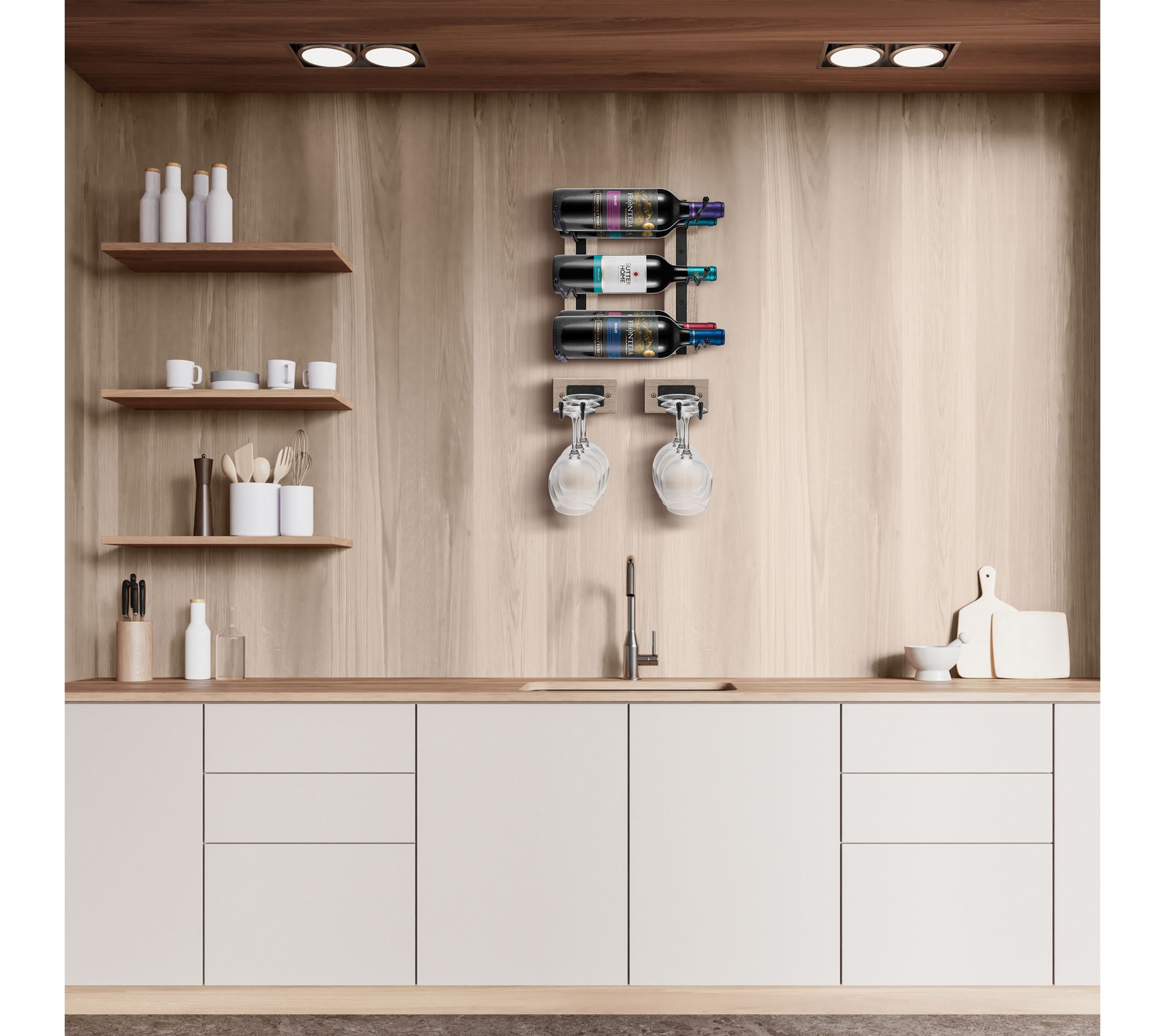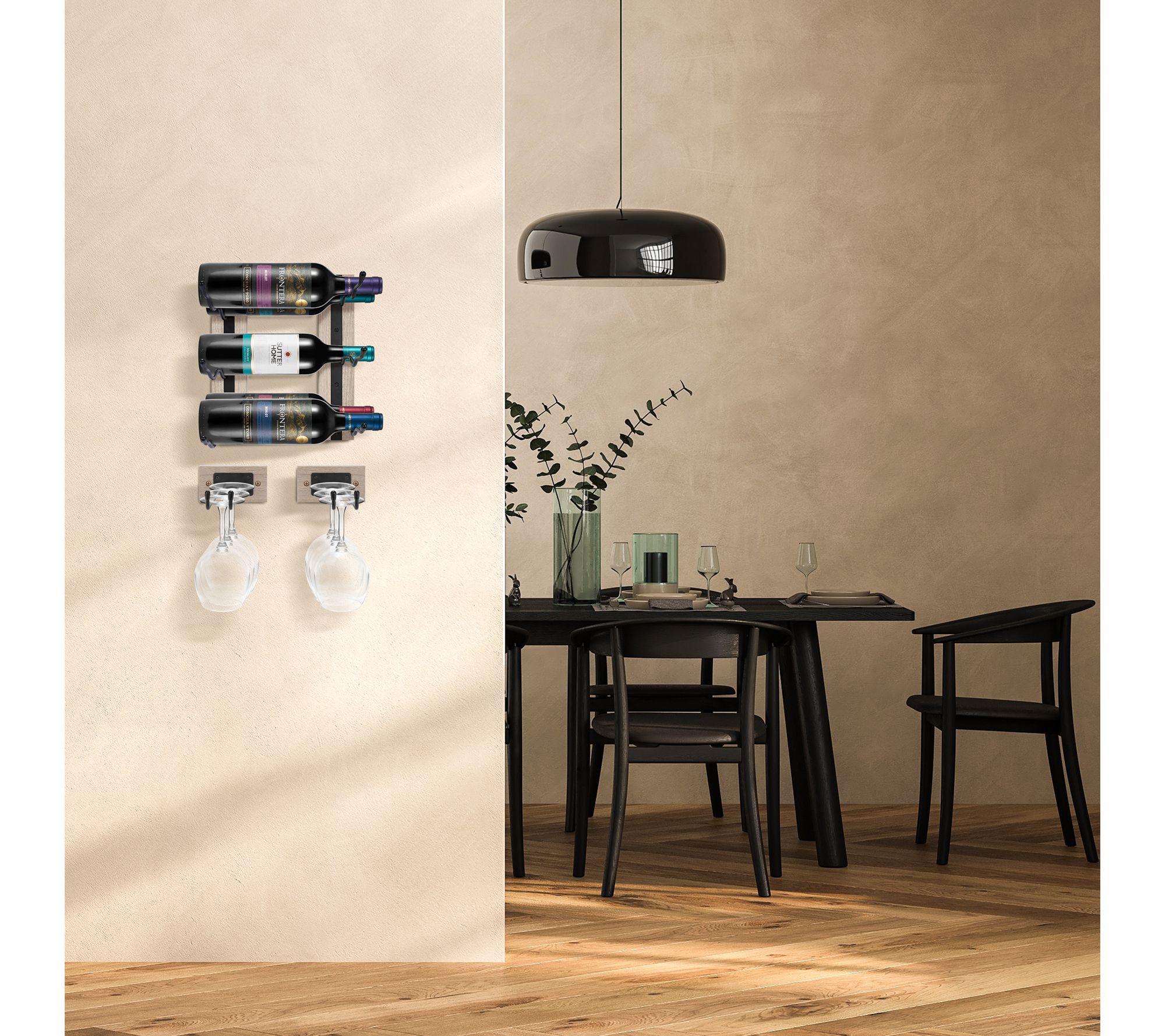 Enhance your home with the Sorbus wall-mounted wine rack and stemware rack set. This versatile four-piece set includes two wine racks and two stemware holders, perfect for displaying your favorite wines and glasses in style. Ideal for kitchens, dining rooms, or even bathrooms, these racks provide a cohesive and elegant storage solution. From Sorbus.