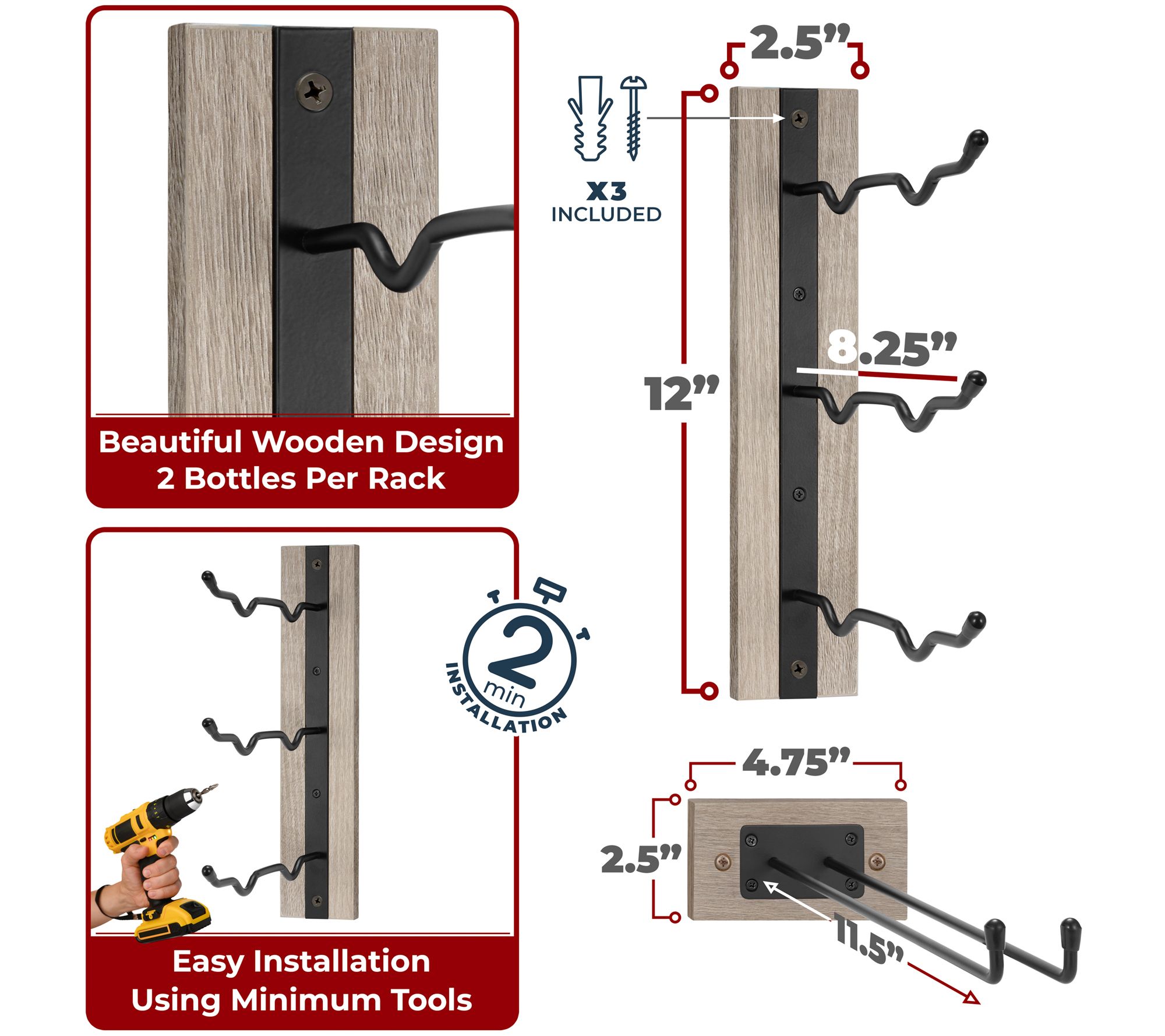 • Each wine rack holds three bottles