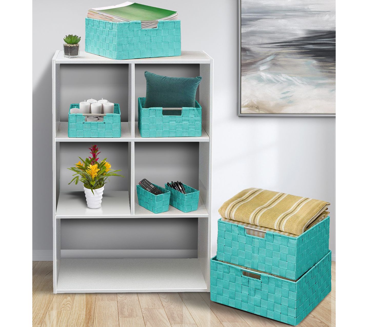 There's a certain serenity when your space has a place for everything, and everything is in its place. These woven storage baskets make it a joy to de-clutter your space and contain crafts, gadgets, baby items, or linens in a neat, chic display. The possibilities are endless. From Sorbus.