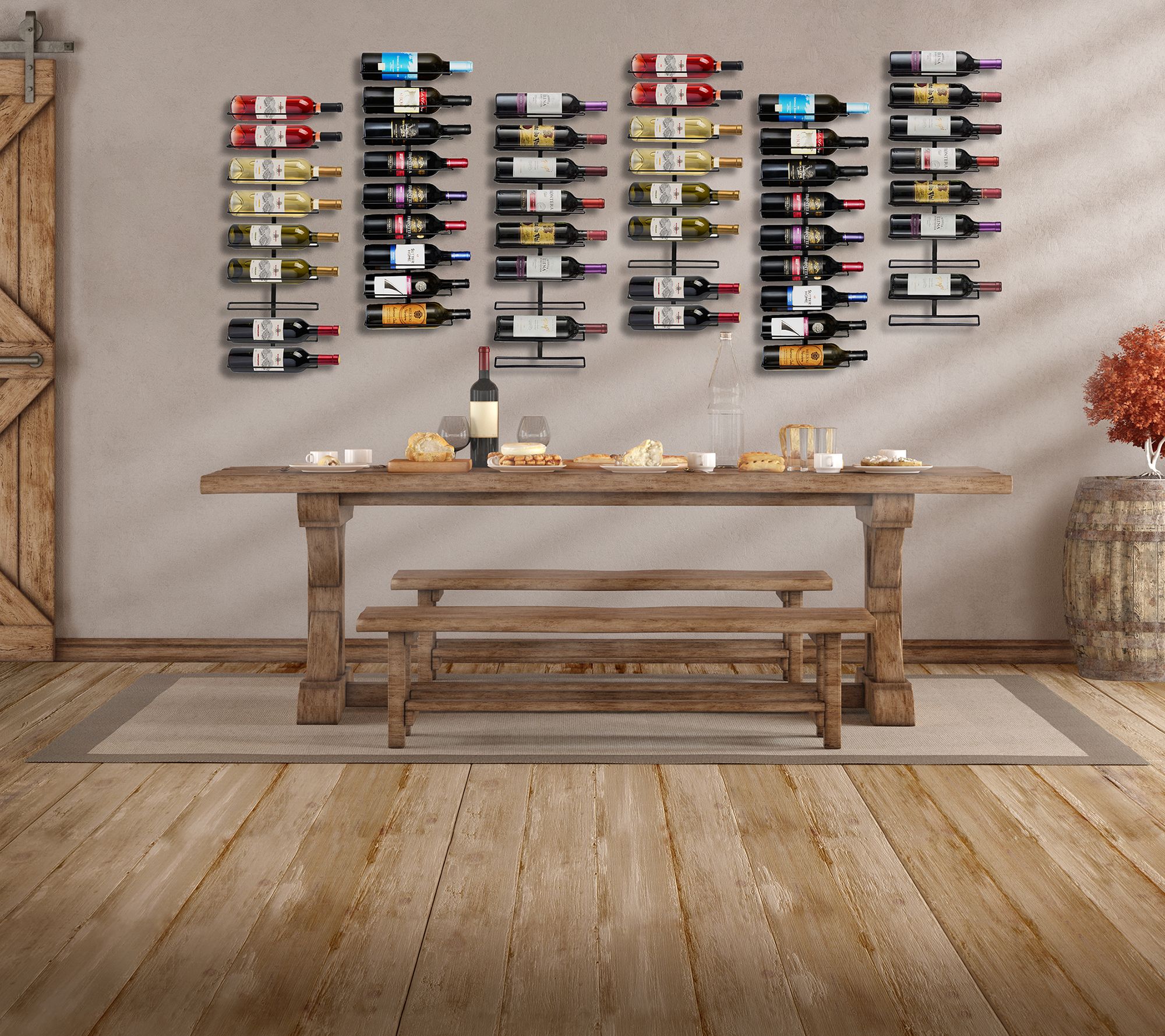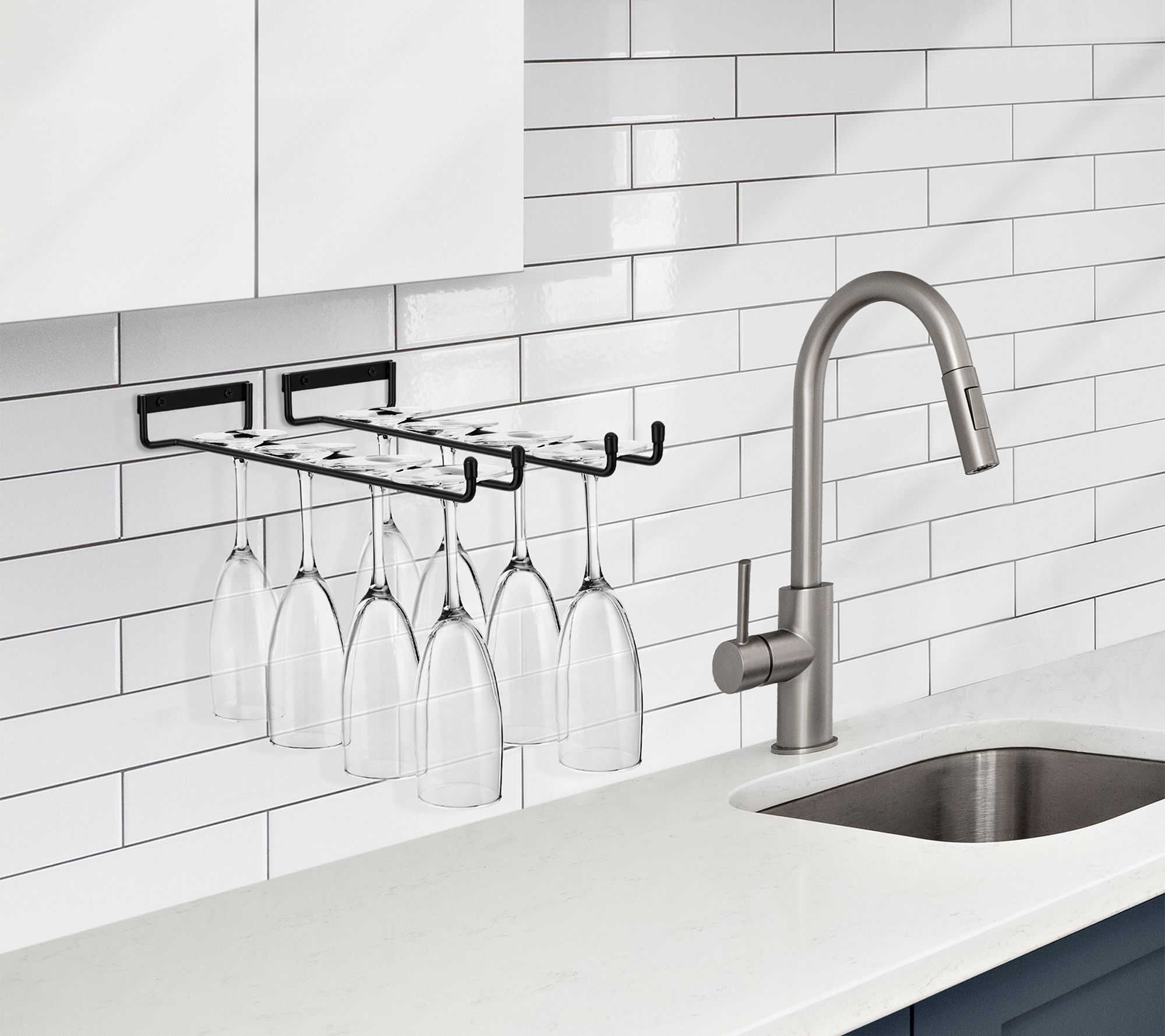• Includes wall-hanging wine bottle holder and under-cabinet wine glass hanger