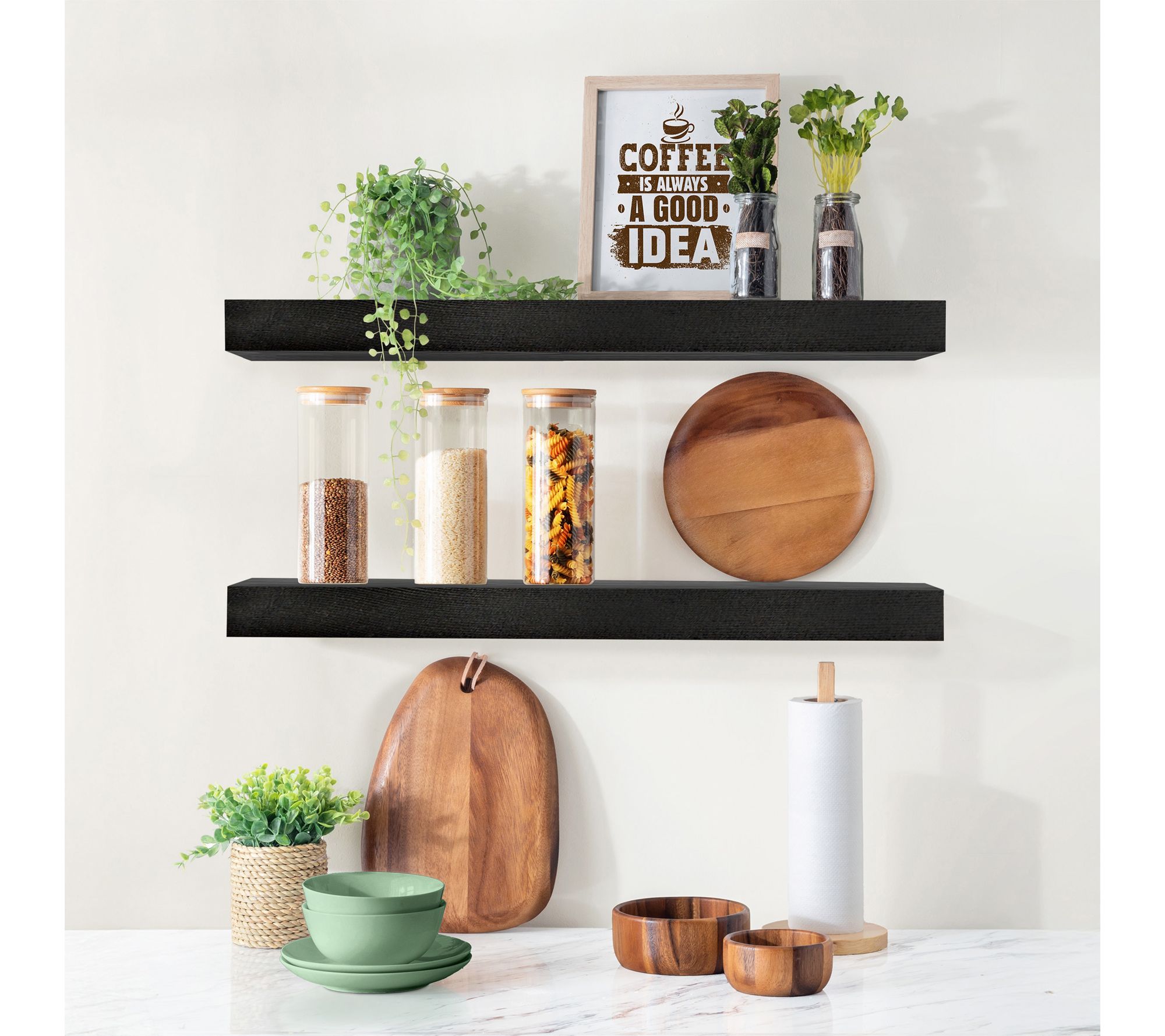 Showcase collectibles, books, and favorite accents with these wood floating shelves, adding a clean-lined statement and instant extra storage to any room. Whether used as an entryway catch-all, kitchen organizer, or to elevate your bathroom essentials, these shelves blend seamlessly with your decor while keeping surfaces clutter-free. From Sorbus.