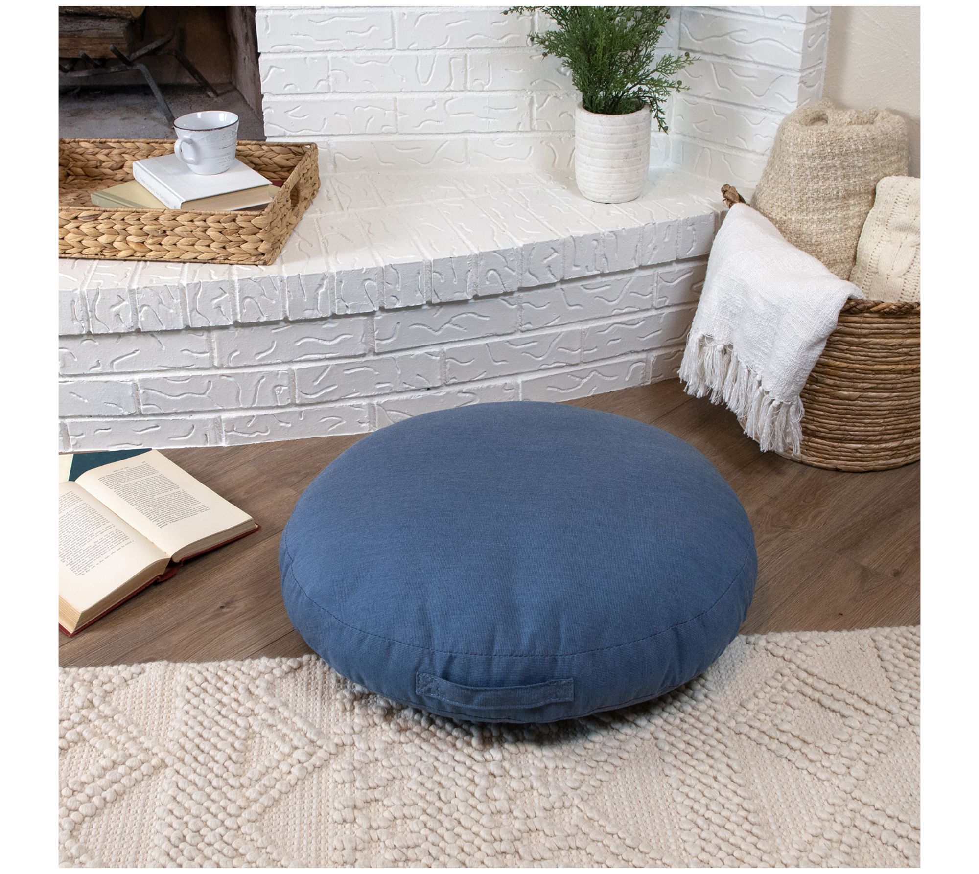 Sorra Home 24" Circle Sunbrella Denim Floor Pillow with Handle