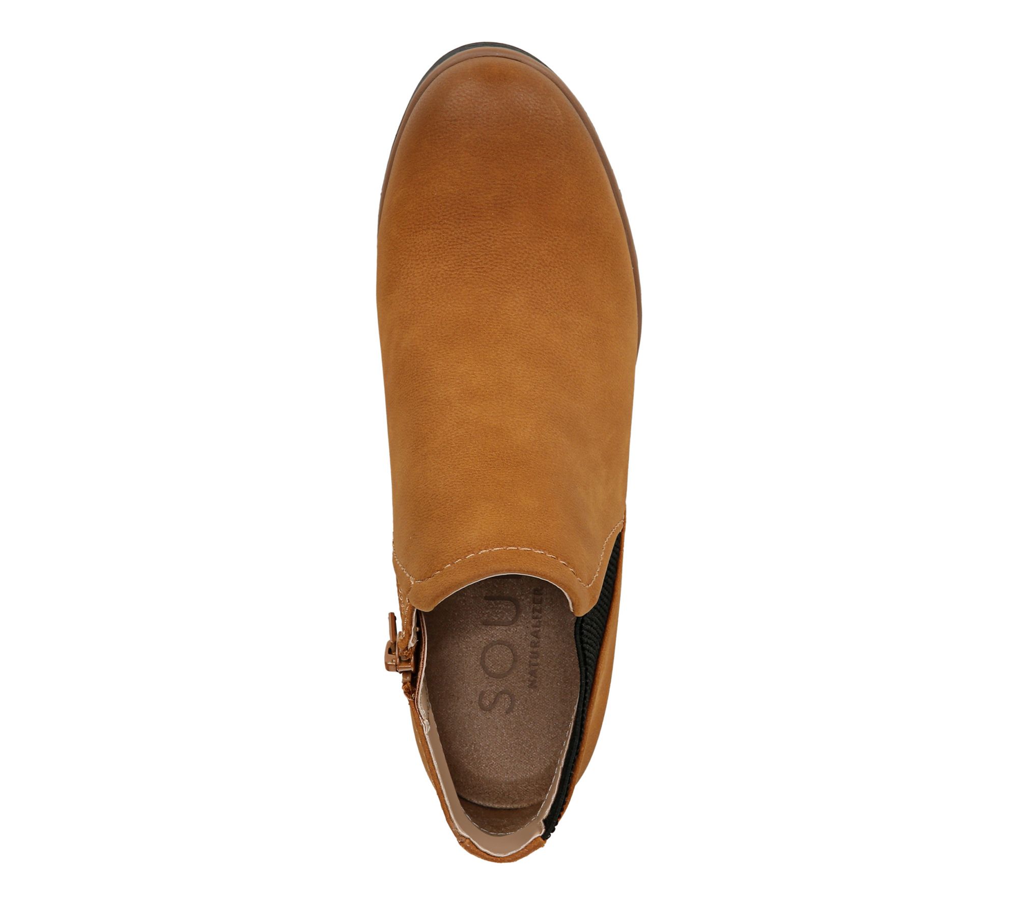 Cool, rainy days, meet your match with these SOUL Naturalizer Affirm wedge booties. The water-repellent ankle booties feature elastic goring and a side zipper, so you can slip right in and head right out, no matter if there's a few sprinkles in the forecast. From SOUL Naturalizer.