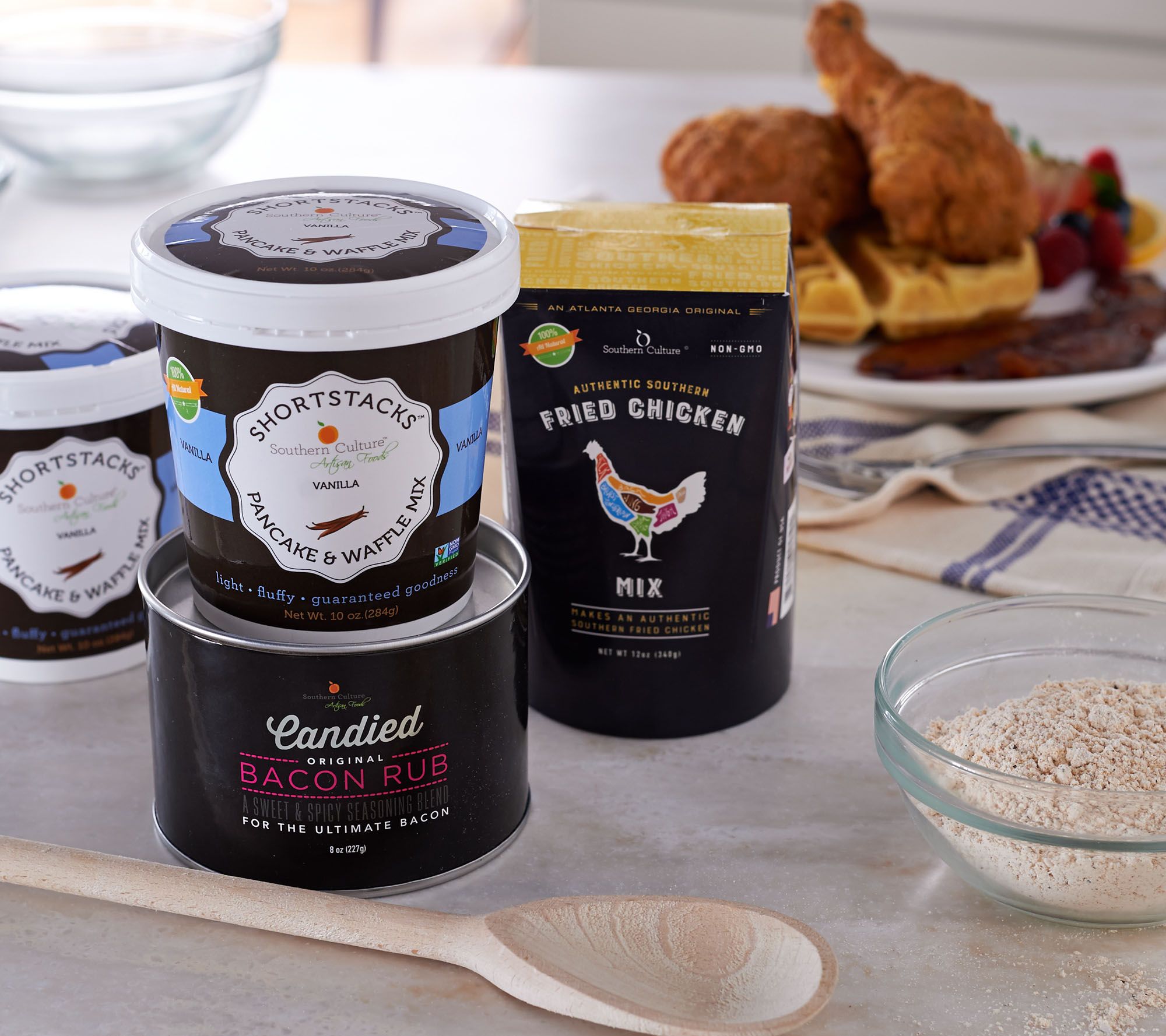 Rise and shine, y'all. Break out of your breakfast comfort zone and sample these Southern Culture crowd pleasers--whip up some vanilla pancakes or waffles, flip a few fried chicken waffles, and put a sweet spin on your bacon with this candied rub. From Southern Culture.