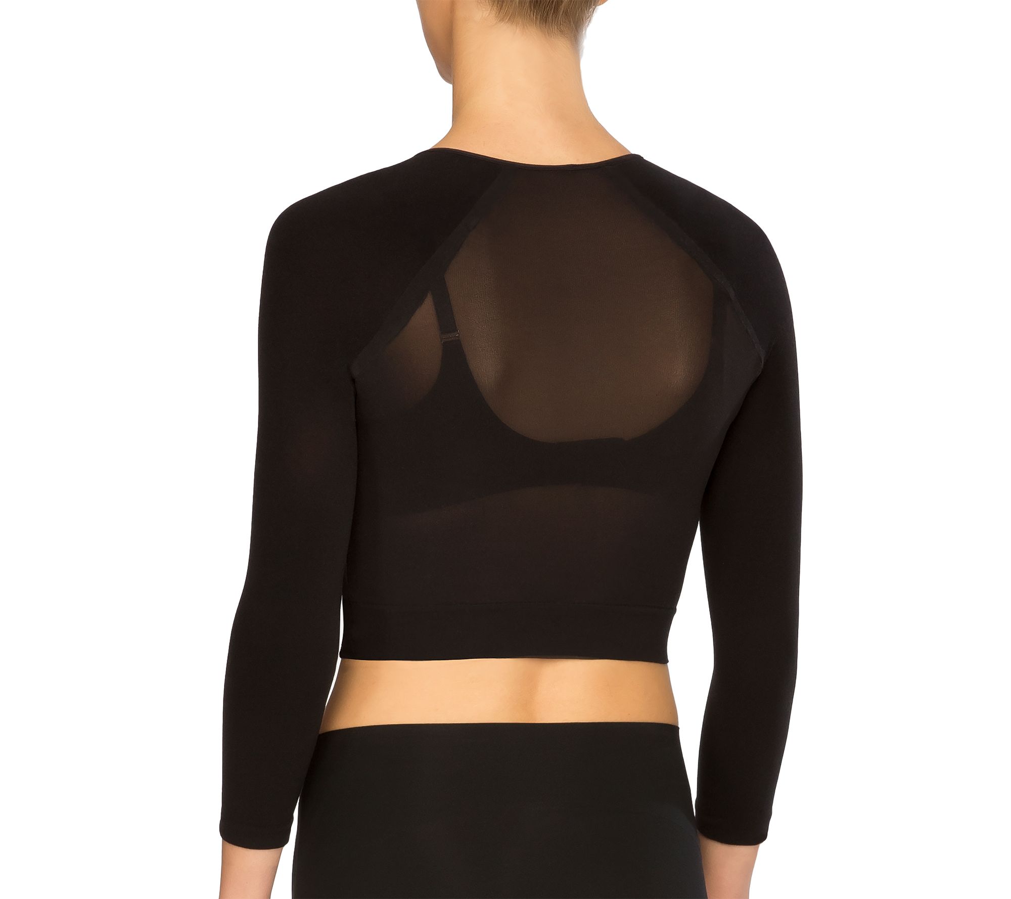 • Content: Black/Brandywine: arms 83% nylon/17% elastane; body 100% nylon; bottom band 81% nylon/19% elastane; Cream Cable/Black Cable: arms 98% nylon/2% elastane; body 100% nylon; bottom band 81% nylon/19% elastane