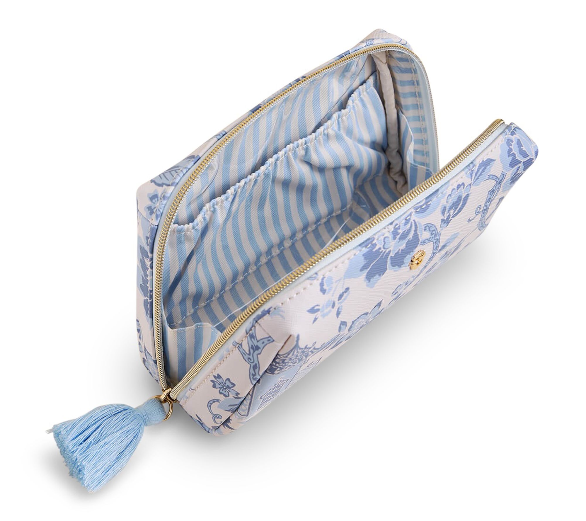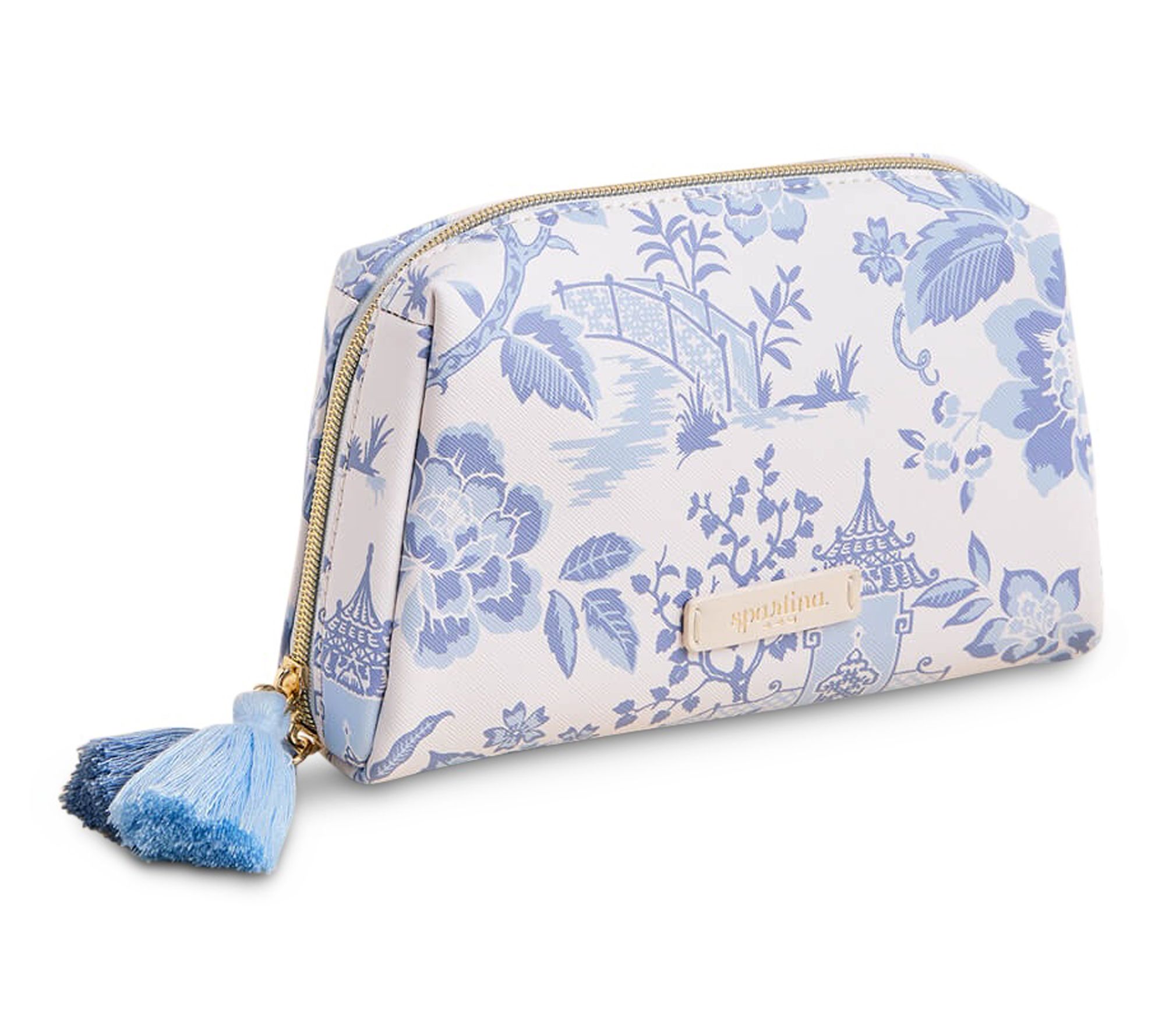 With its vinyl fabrication, this cosmetic pouch can go from your favorite brush and blush carrier to storing your bikini after a dip in the hotel pool. Compact yet roomy, this case fits easily into most suitcases, duffle bags, or weekenders! From Spartina 449.