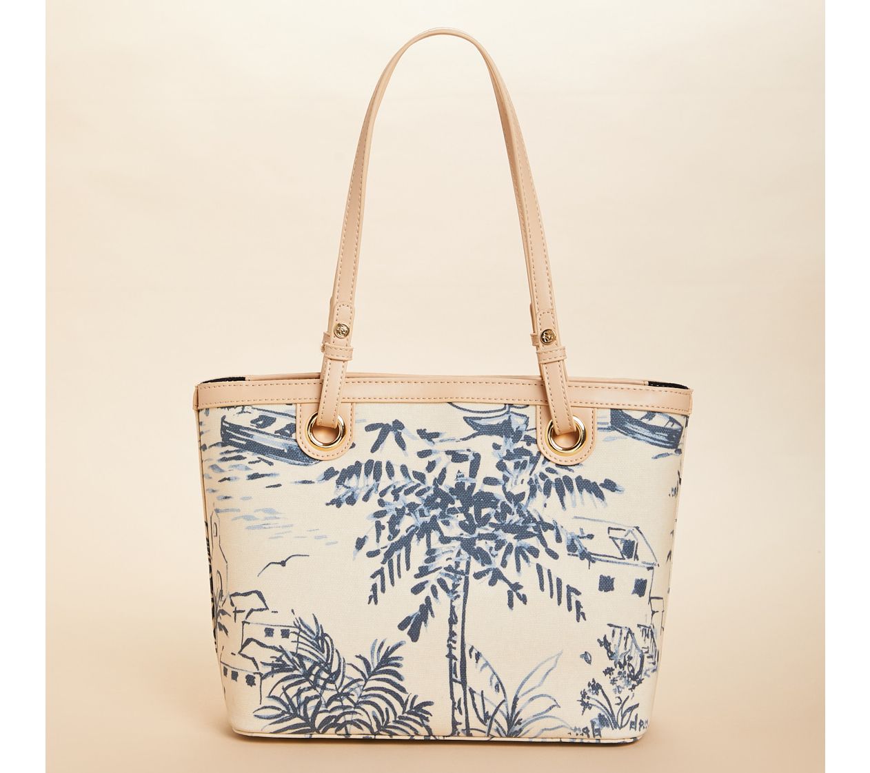 From work to weekend and everything in between, the Spartina 449 Island Tote is ready to go. This versatile mid-size day tote features a zip top closure and a dash of organization inside with one zip and two slip pockets. And of course, the bag boasts Spartina's special touches like the golden logo, mermaid feet, and colorful hanging papyrus tassel. From Spartina 449.