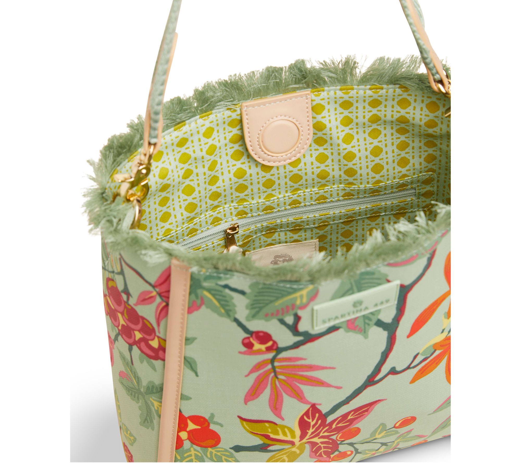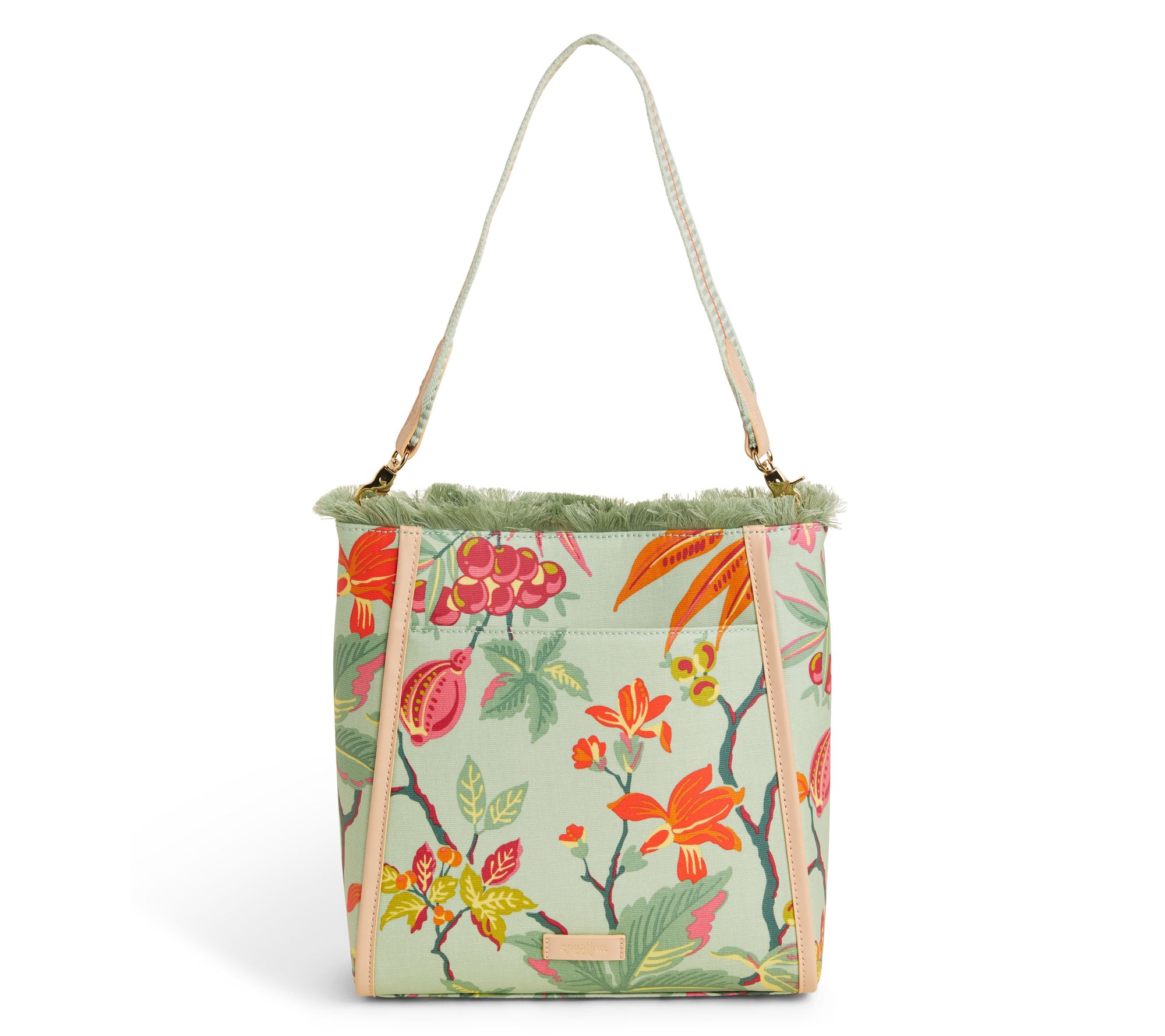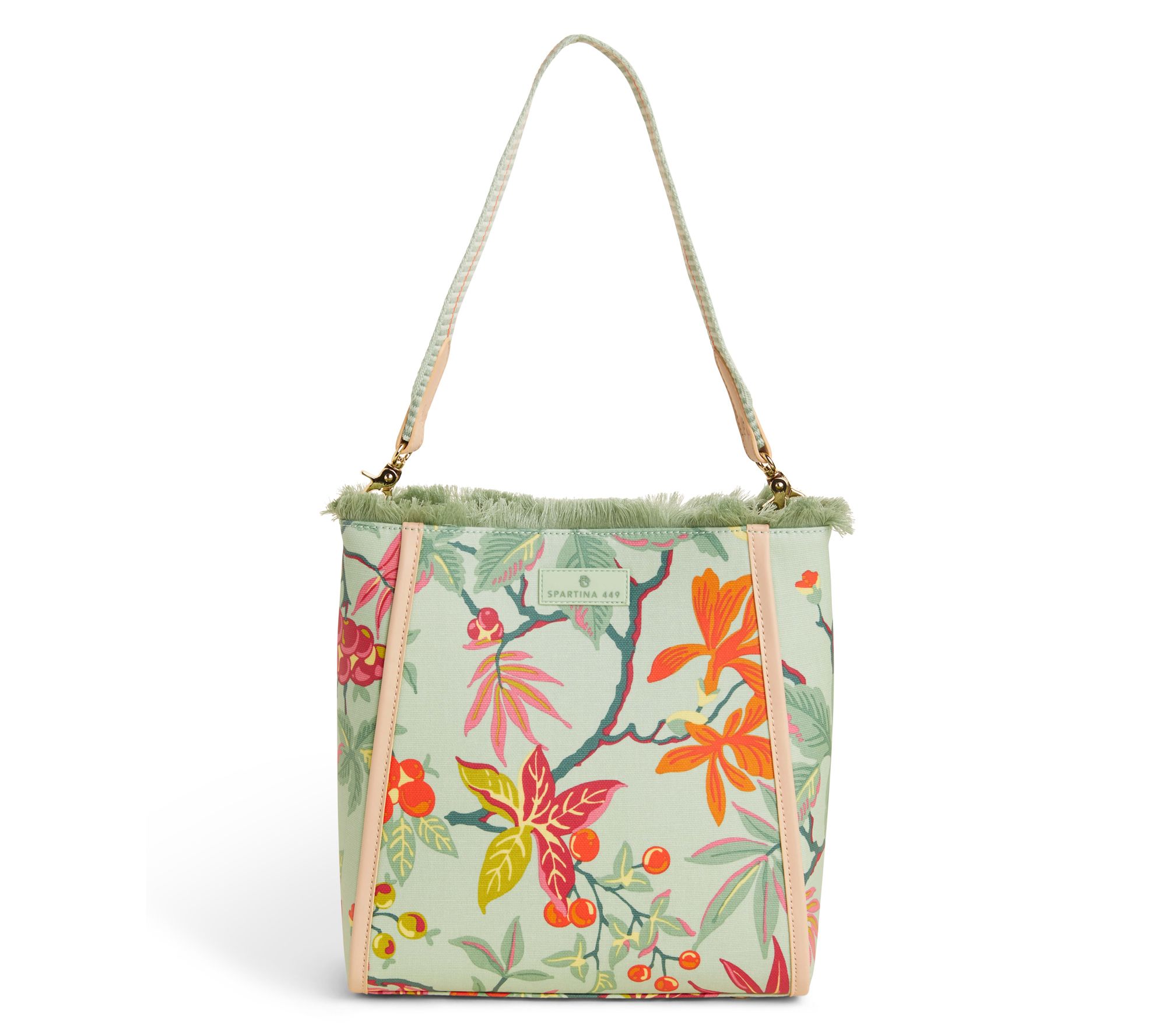 Need something functional and stylish? Spartina 449's Melody bucket bag in Richmond Hill Sea Foam has you covered. With a roomy interior and three inside pockets, you can stay organized and easily find your keys when you're on the move every day. It even features mermaid feet to sit pretty wherever you place it. From Spartina 449.
