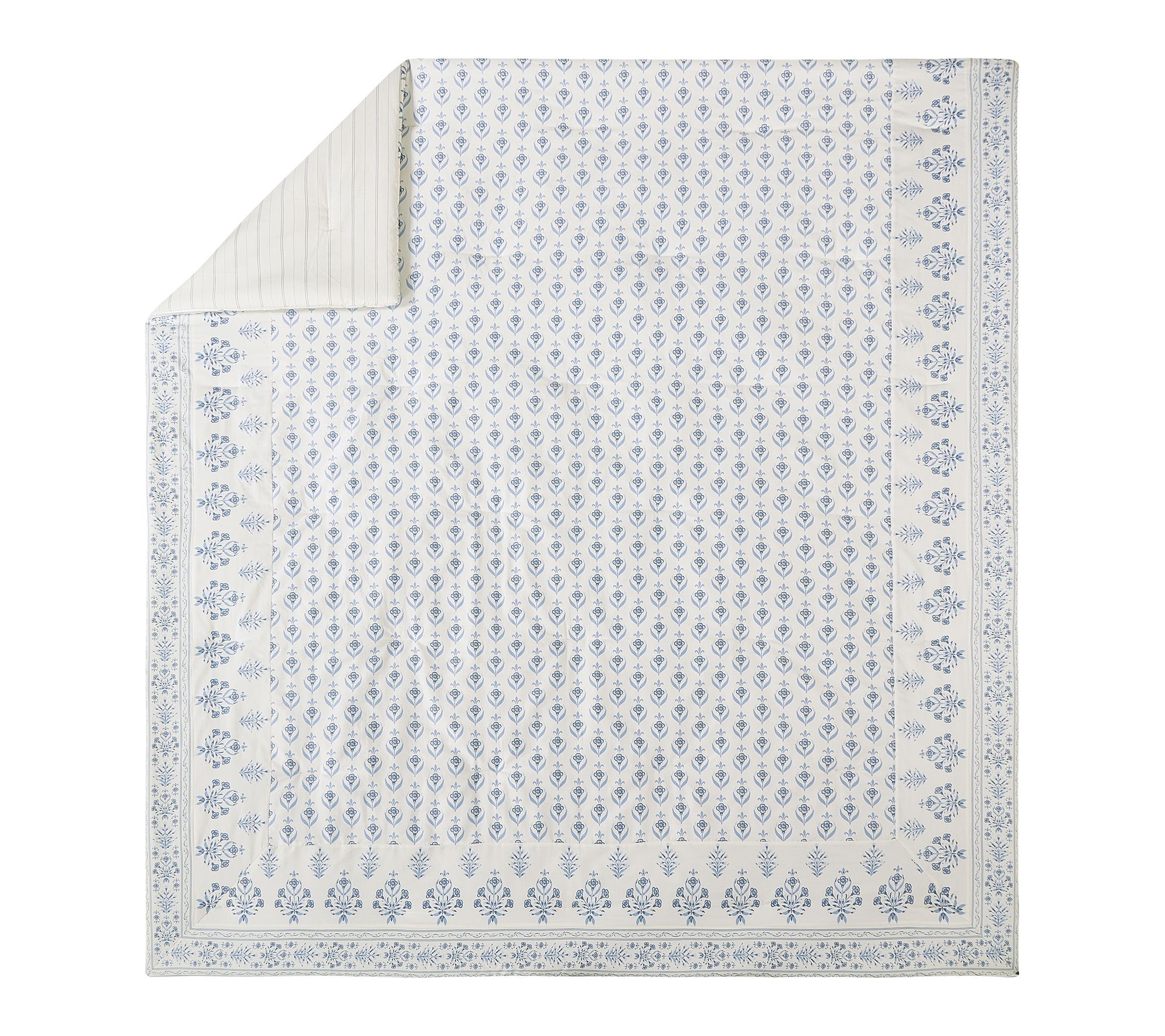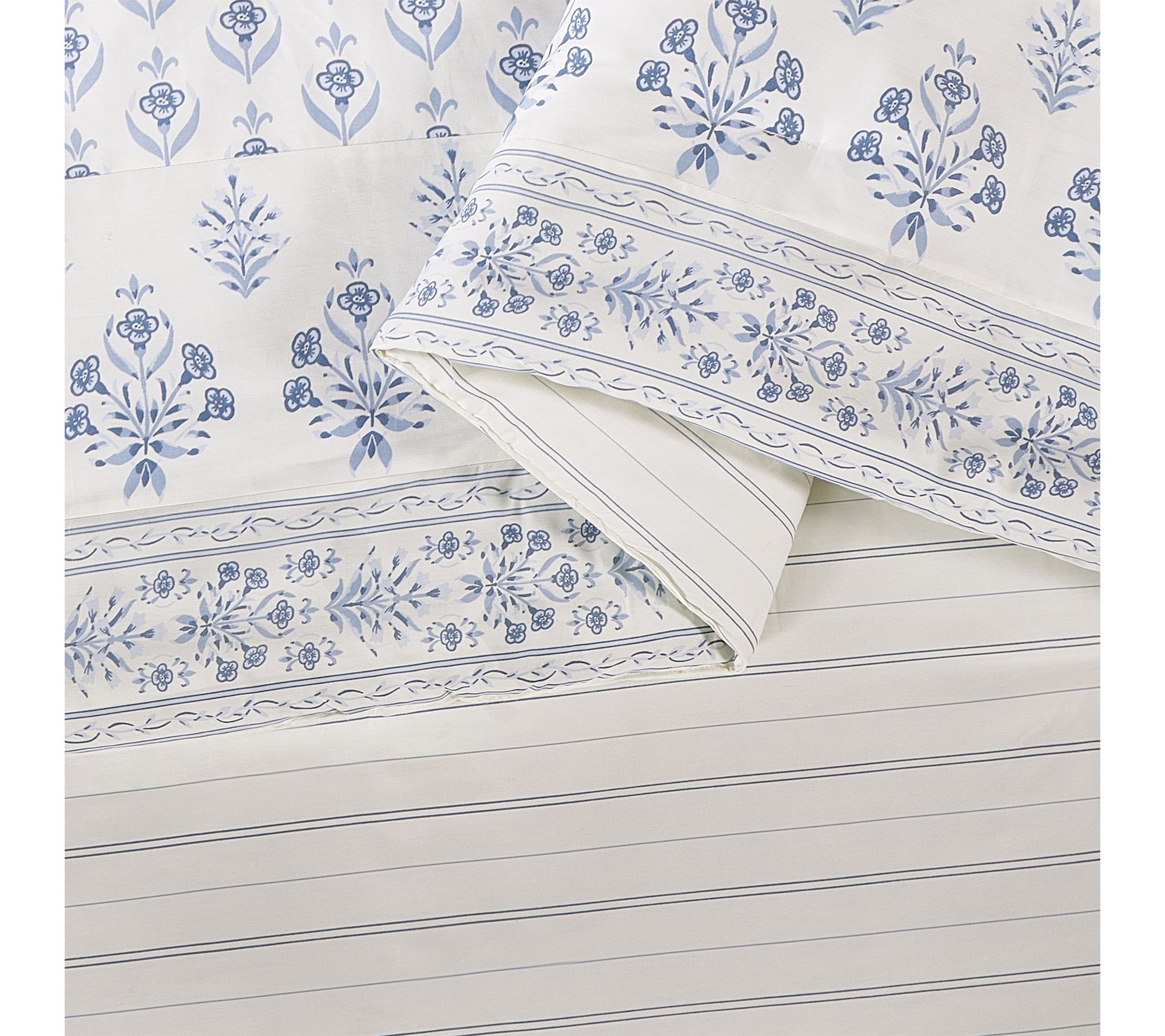 Inspired by the coastal charm of Daufuskie Island, this Peeples Song three-piece king comforter set brings the tranquility of soothing blues and delicate floral patterns to your bedroom haven. Enjoy a silky-smooth, 300-thread count cotton sateen comforter with plush polyester fill and a reversible striped back for effortless style updates. From Spartina 449.