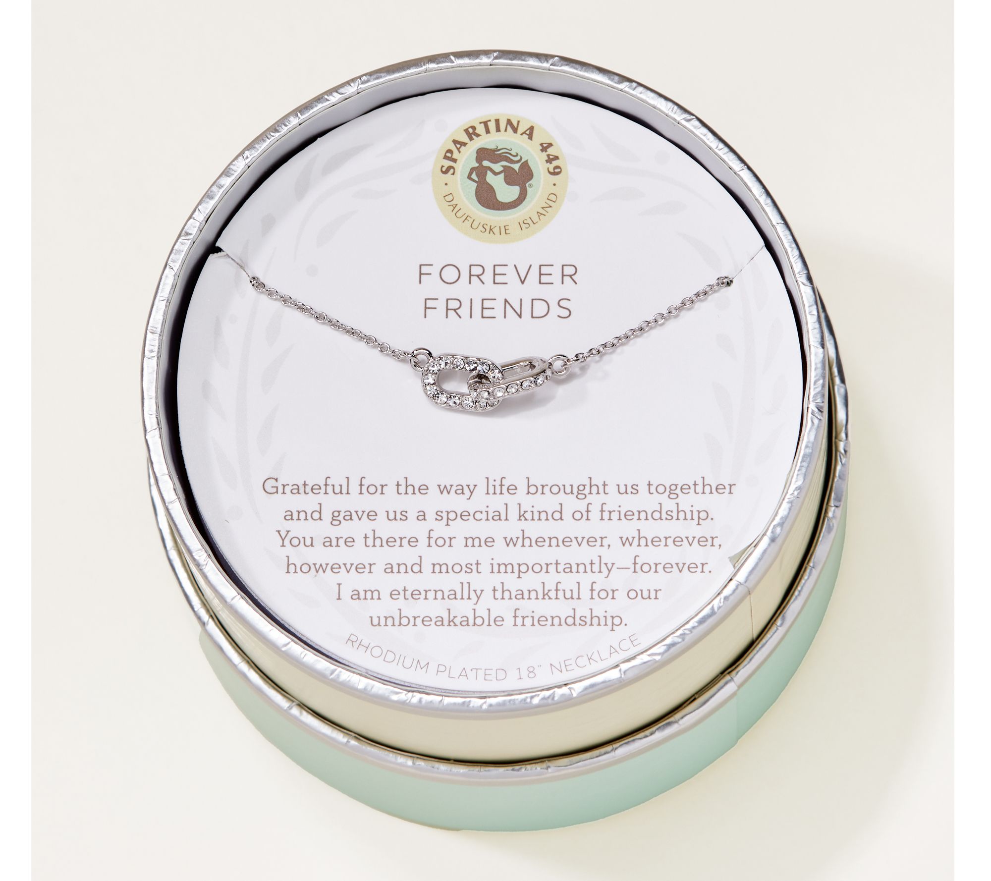 Celebrate the friends who feel like family with this inspirational necklace, designed as a daily reminder of gratitude for those unbreakable bonds. A crystal-studded link charm gleams from an 18K gold-plated cable chain, making it the kind of keepsake you'll want to give -- or get -- for every milestone and memory shared. From Spartina 449.