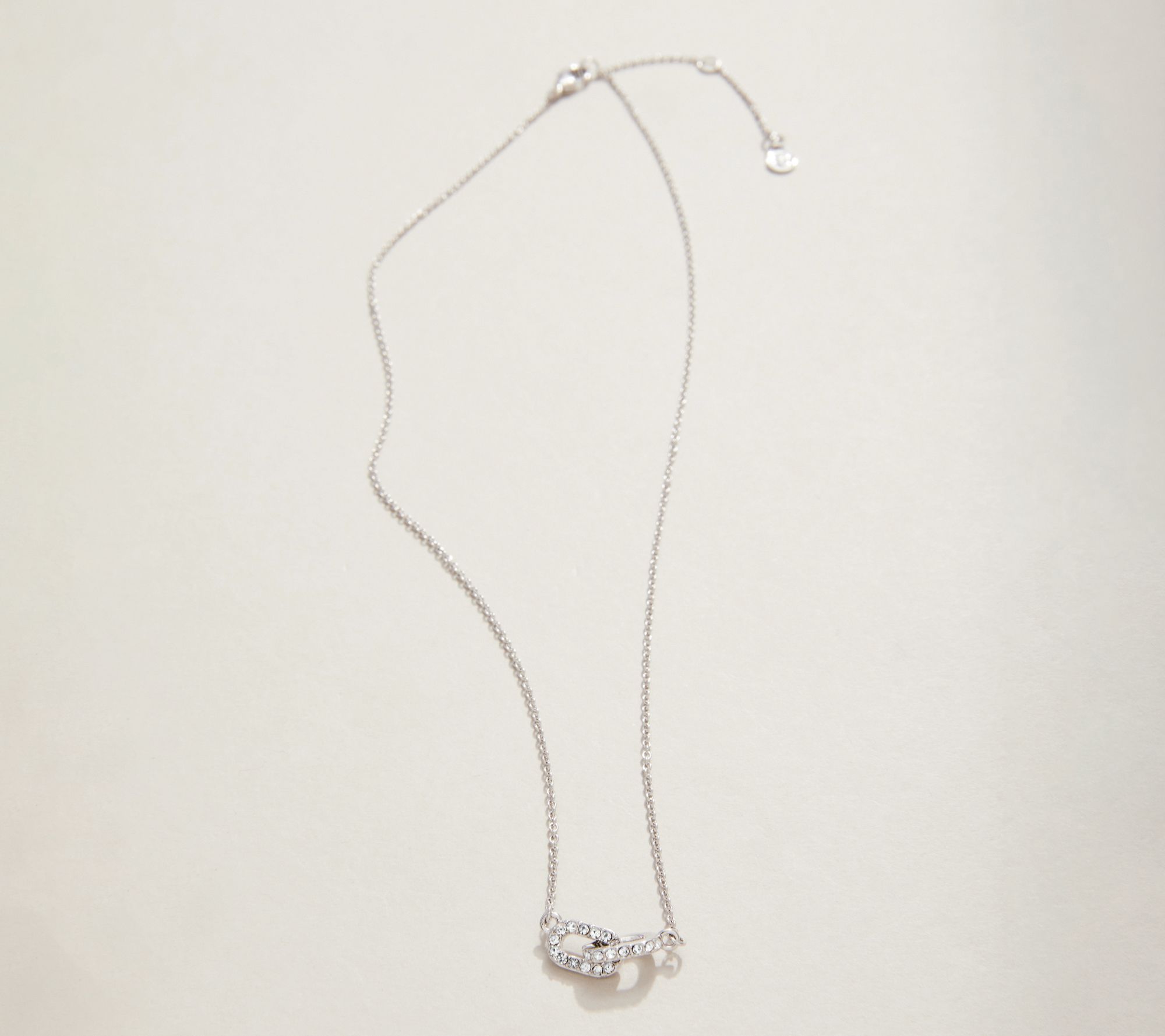 • Strength motif; link charm with round, bezel-set crystals; cable link chain